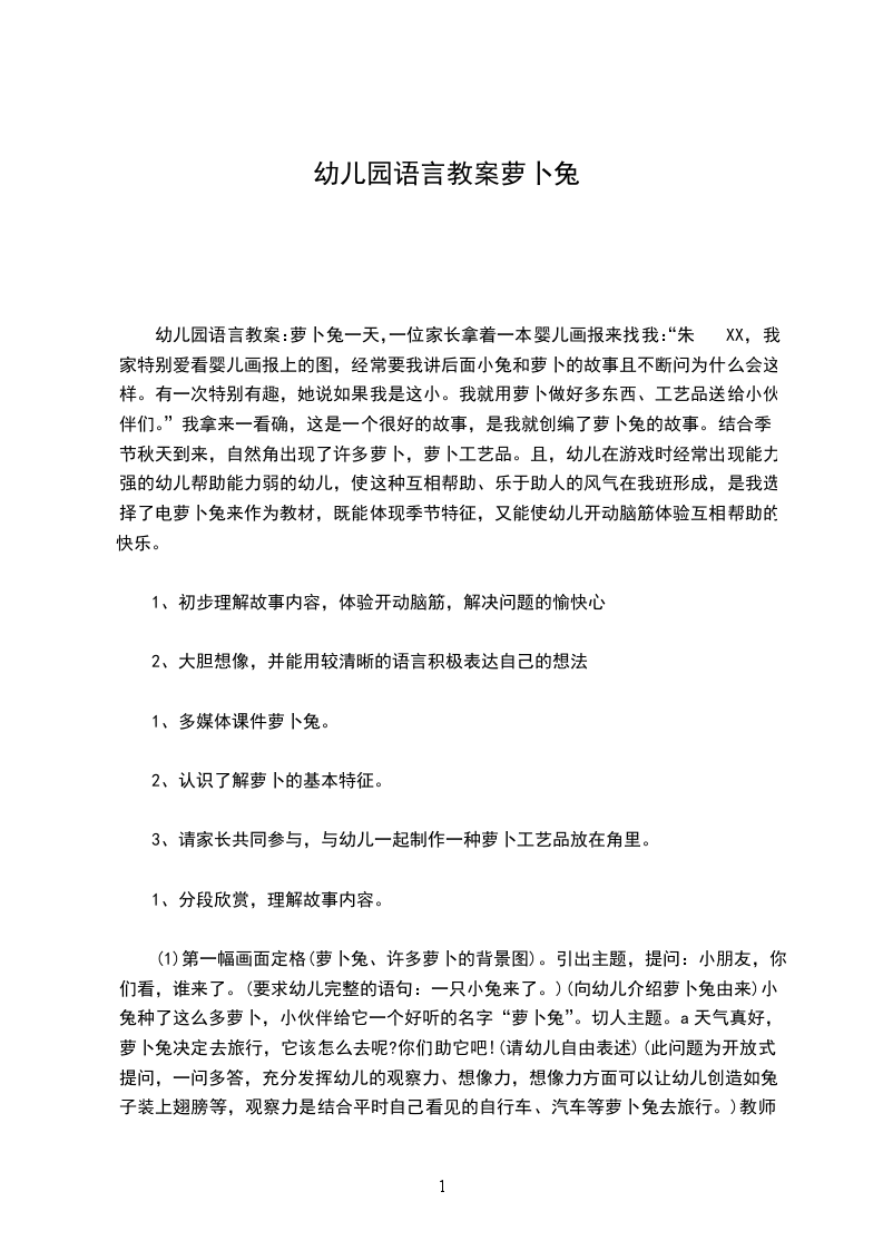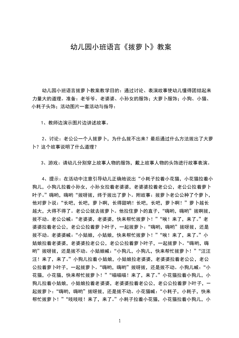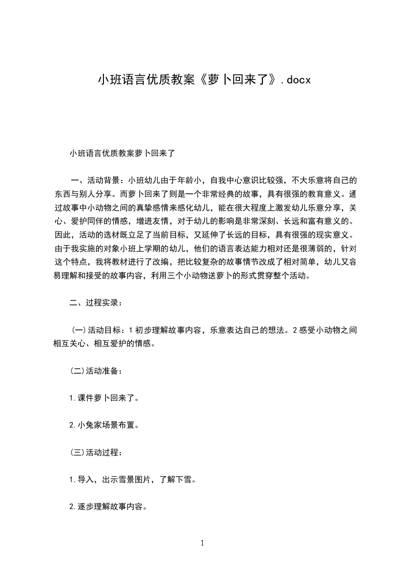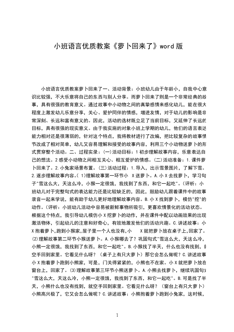 幼儿园大班语言优质课教案萝卜回来了含反思