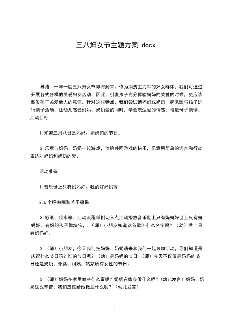 2.(师)小朋友,今天我们把妈妈、奶奶请来和我们一起参加活动,你们知道是庆祝什么节日吗?谁的节日呢?(幼)是妈妈的节日。(师)今天不仅仅是妈妈的节日还是奶奶、外婆、阿姨、姑姑所有女性的节日。