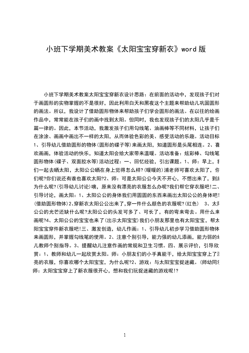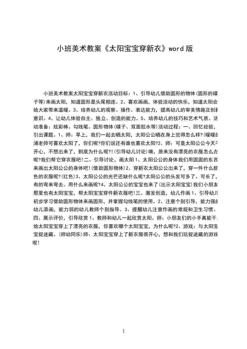 幼儿园小班美术优秀教案太阳宝宝穿新衣含反思活动目标
