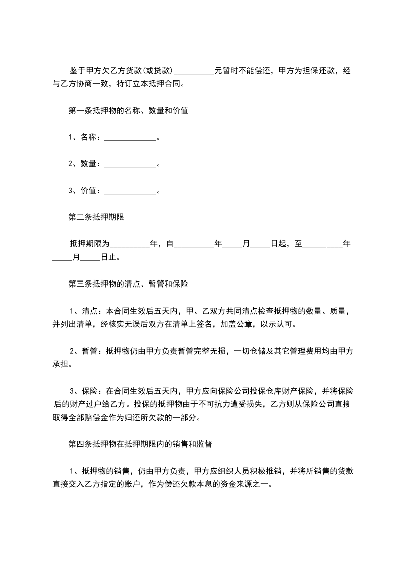 鉴于甲方欠乙方货款(或贷款)__________元暂时不能偿还,甲方为担保还款,经与乙方协商一致,特订立本抵押合同。
