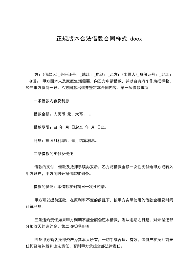 1、甲方应于_年_月_日前一次性提供给乙方合同约定的借款数额。