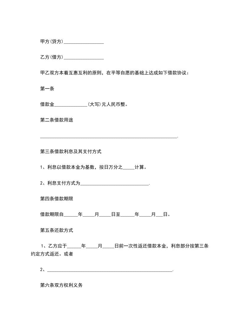 甲乙双方本着互惠互利的原则,在平等自愿的基础上达成如下借款协议: