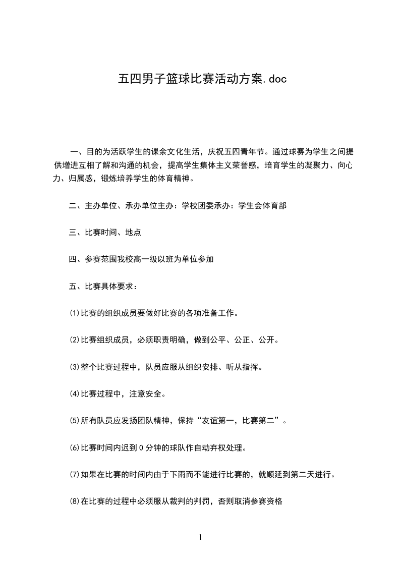 一、目的为活跃学生的课余文化生活,庆祝五四青年节。通过球赛为学生之间提供增进互相了解和沟通的机会,提高学生集体主义荣誉感,培育学生的凝聚力、向心力、归属感,锻炼培养学生的体育精神。