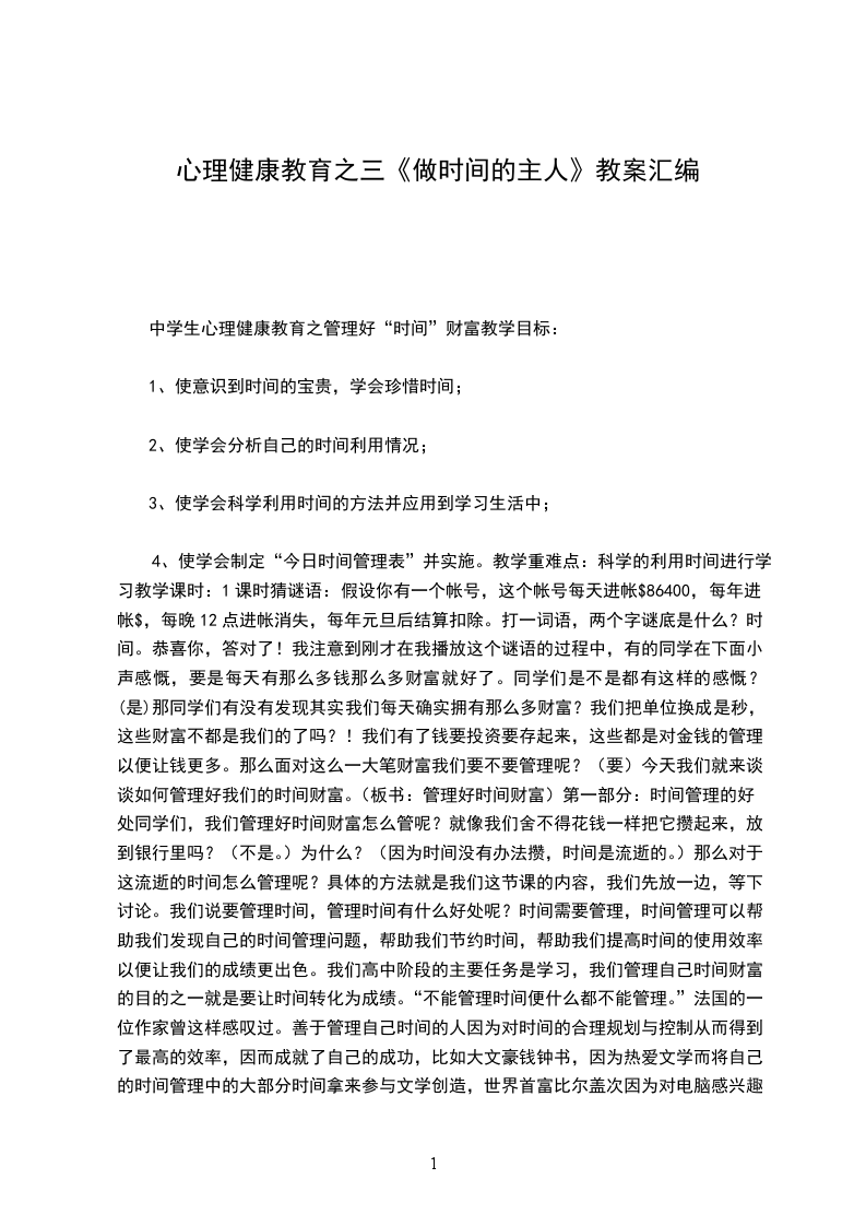 中学生心理健康教育之管理好“时间”财富教学目标: