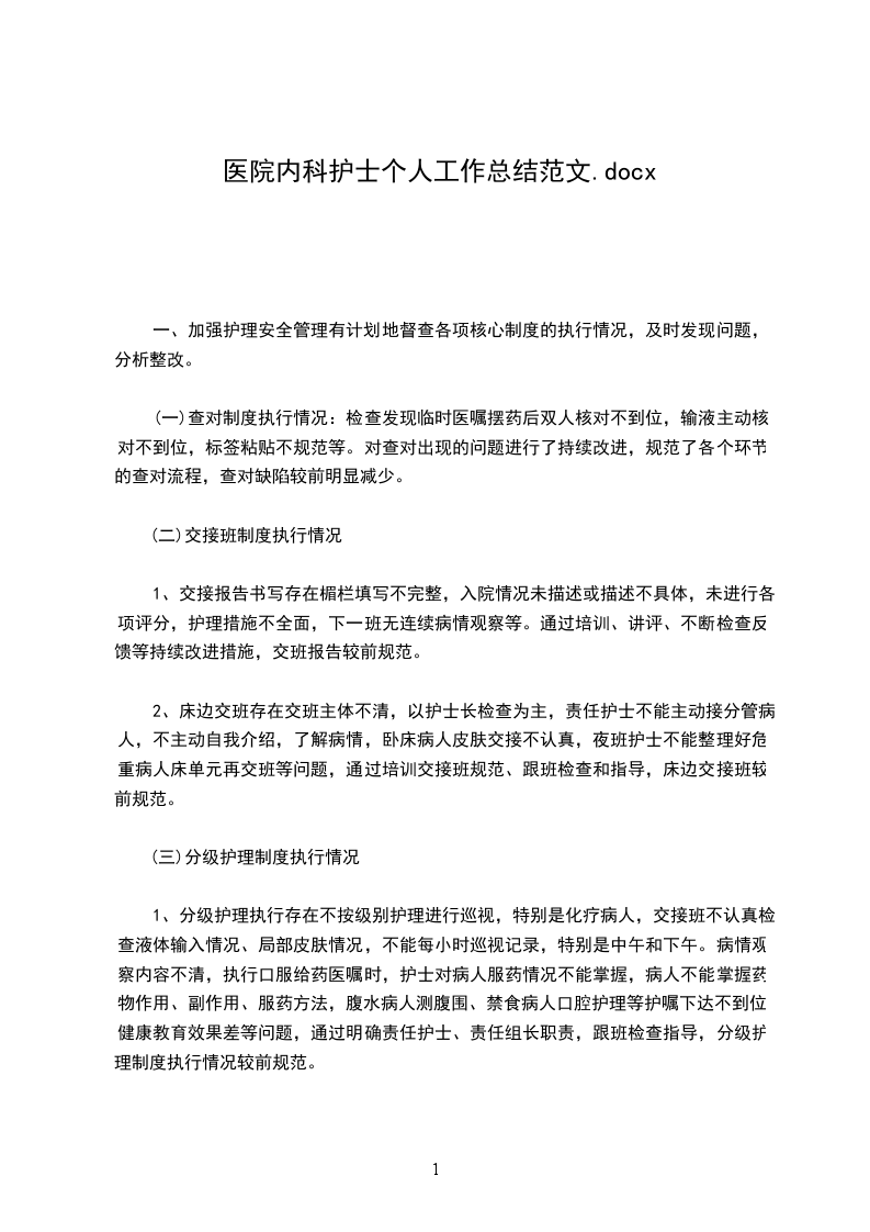 1、交接报告书写存在楣栏填写不完整,入院情况未描述或描述不具体,未进行各项评分,护理措施不全面,下一班无连续病情观察等。通过培训、讲评、不断检查反馈等持续改进措施,交班报告较前规范。
