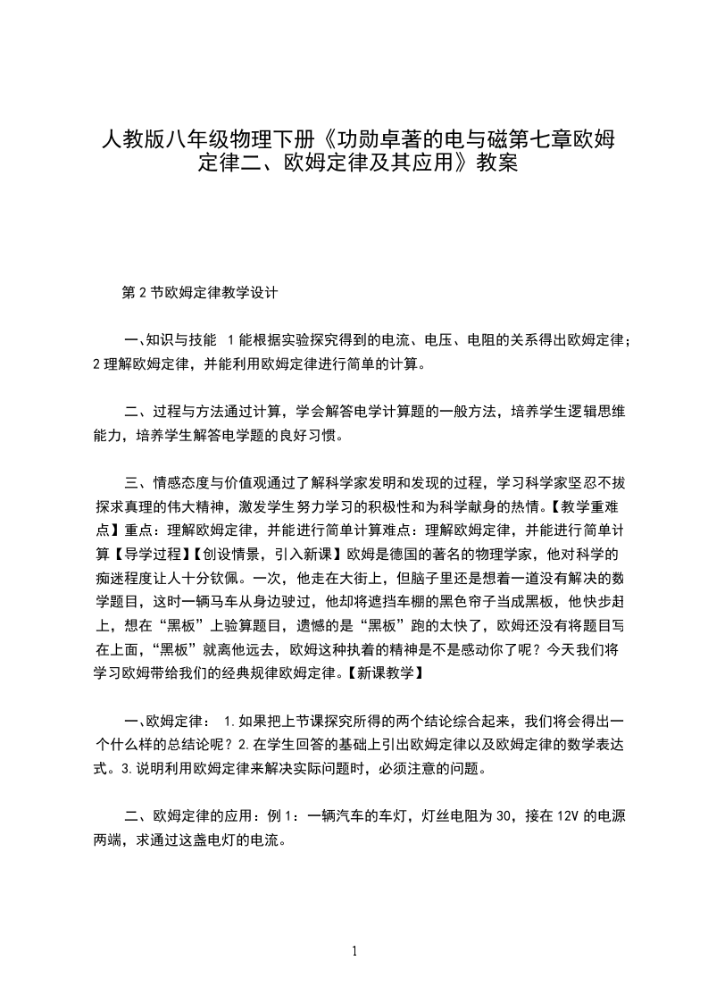 2、意识到留意观察、善于思考品质重要。教学重点亲历通电直导线和通电线圈使指南针偏转的实验教学难点分析电和磁的关系教学准备学生自备:一号电池教师准备:电池盒、小电珠、灯座、导线、指南教学流程学生活动媒体与技术的应用说明教学设计100多年前,人们对电和磁的了解十分的有限。在一次偶然的情况下,丹麦科学家奥XX发现了一个有关电和磁的秘密。你们想知道这个秘密是什么吗?今天我们就一起来重现历史上那个伟大的时刻。(板书课题:电和磁)1.奥XX当年正在用一个简单的电路做实验。桌上有老师准备的材料。请你们先用这些材料组装一个简单电路。2.当时在奥XX的实验桌上放着指南针。这个指南针的指针一头指着北,一头指着南。当接通了电源的导线靠近它时,奥XX突然看到一个现象你们想试一试吗?