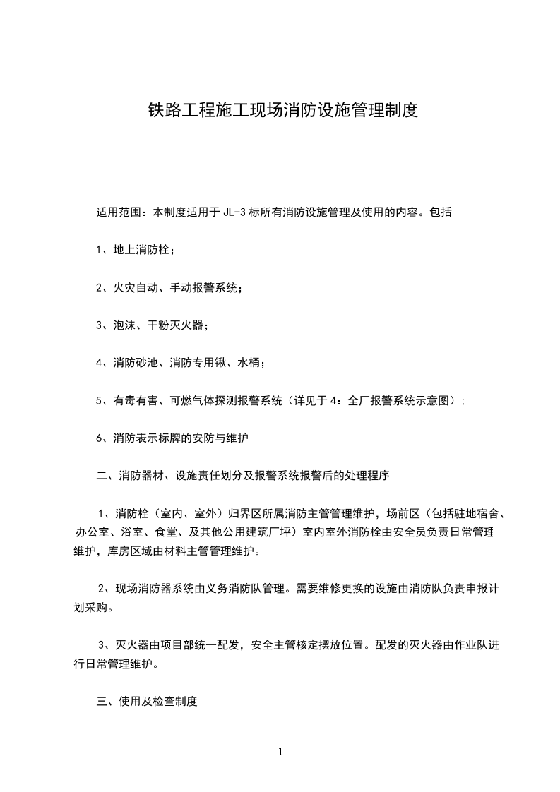 适用范围:本制度适用于JL-3标所有消防设施管理及使用的内容。包括