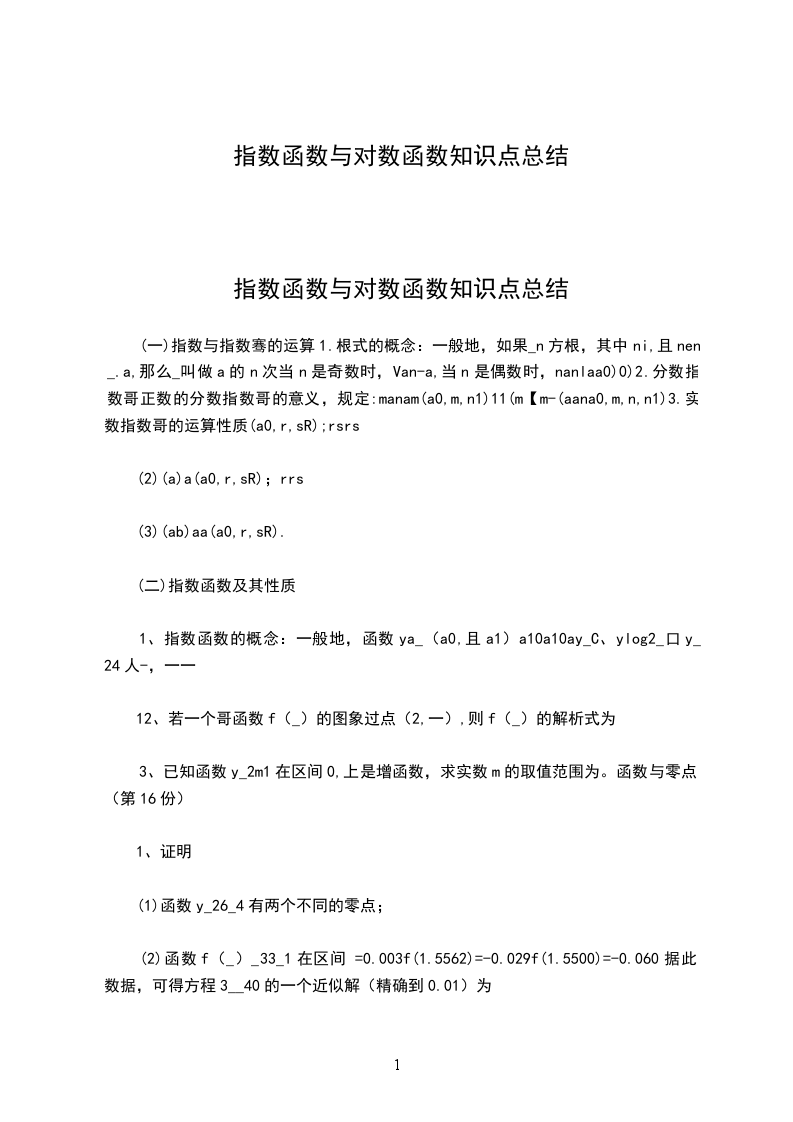 (一)指数与指数骞的运算1.根式的概念:一般地,如果_n方根,其中ni,且nen_.a,那么_叫做a的n次当n是奇数时,Van-a,当n是偶数时,nanlaa0)0)2.分数指数哥正数的分数指数哥的意义,规定:manam(a0,m,n1)11(m【m-(aana0,m,n,n1)3.实数指数哥的运算性质(a0,r,sR);rsrs