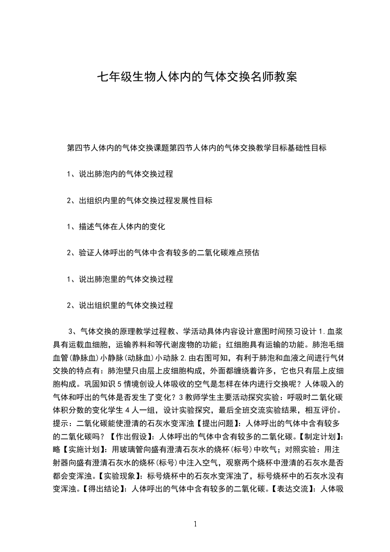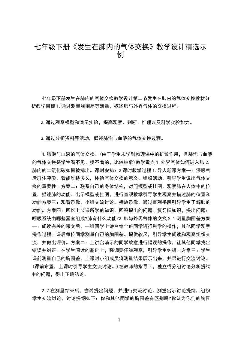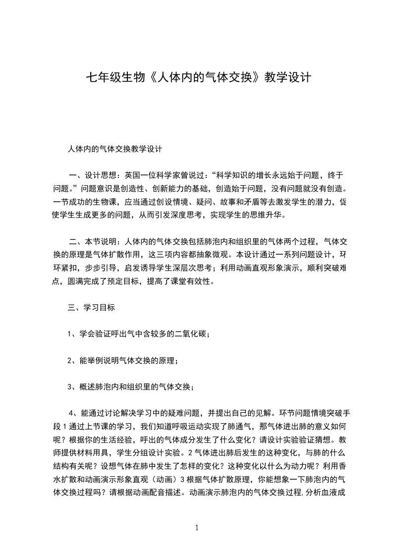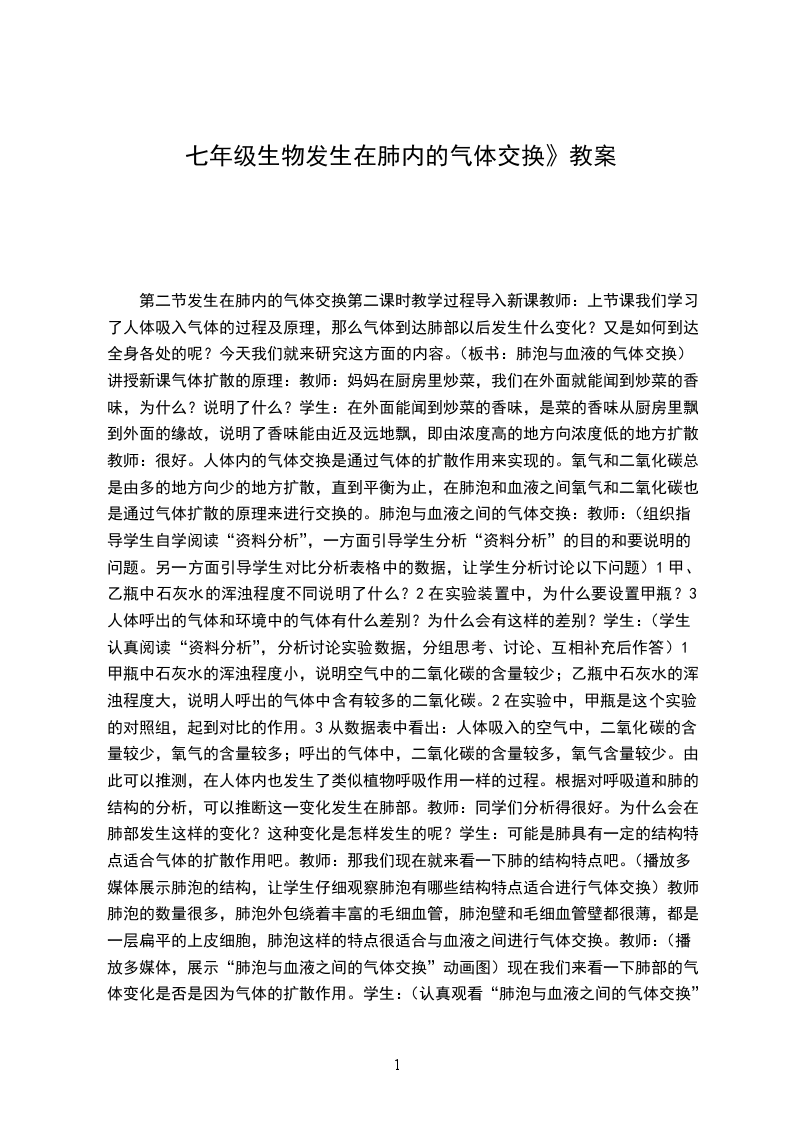 四、教学过程:环节及要点教师活动学生活动导入我们每个人一来到人世间就离不开空气,需要不断呼吸,外界的空气经过呼吸道的处理后是如何进入肺部的?在肺中发生怎样的变化?气体又是如何达到全身各处的?这节课我们就一起来学习这部分内容。感受呼吸现象正文讲解