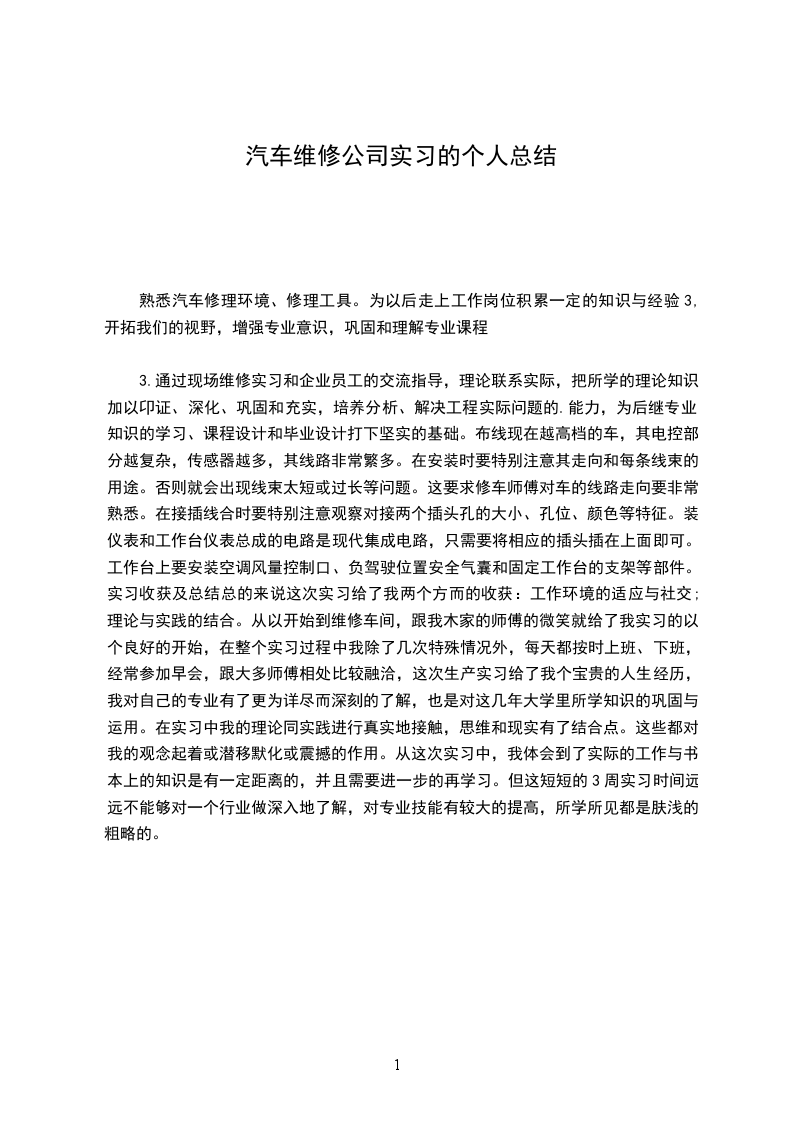 三、实习心得通过此次实习我收获了很多东西,了解了汽车的基本构造和基本知识,增强了团队合作精神,真正在工作中体会到了团队合作的重要性,同时也增强了积极面对和克服困难以及吃苦耐劳的能力,为以后对工作的适应打下了比较好的基础。对于整车的拆解我们遵循着严格的流程,有着明确的分工,每个班分成三个组主拆组、分拆组和数据登录组,这都对我们顺利的完成拆车实习起到了十分重要的作用。在正式的拆车之前我们首先对车辆的整车姿态进行了测量,对车辆的各个姿态进行拍照。在此之后有做了些拆车之前的准备工作,例如断电、放水和放油。之后我们进入了正式的拆解环节,在现场督导的指导下整车的拆解紧张而有序的进行。首先拆的是四门两盖,由于大多数同事没有拆车的经验,所以在拆的时候都没有找到技巧导致拆的比较慢。然后开始拆保险杠和翼子板。在拆车之前我一直都认为保险杠都是用金属等强度比较到的材料制造的,但是拆车的时候发现我们拆的车的保险杠是塑料的,感觉到有些难理解,保险杠是塑料的在汽车发生交通事故的时候又怎么起到保险的作用呢?通过别人的讲解使我走出了保险杠必须是金属制造的这个误区,原来采用塑料也有其优点。乘用车上的保险杠的主要作用是在碰撞的时候可以吸收掉部分能量,从而保证车辆乘员的安全,我们这个车前保险杠后面没有吸能块,其他的两辆车有吸能块,这样其吸能效果可能会更好。此外保险杠还可以起到装饰的作用,同时还可以减轻车辆的重量,我想可能还和行人保护有关系吧。还有原来我对汽车的各个灯的名称和作用也不是很清楚,通过电器科室的陈工的讲解是我了解了汽车各个灯的名字和作用,之后我又请教了我们班的宋督导进一不加深了对车灯系统的了解,从而分清了远光灯、近光灯、位置灯、制动灯、转向灯和倒车灯。像这样的事情还有很多,我想如果要不是参加车辆的拆解实习我现在还是一个车盲,连最基本的汽车常识都不知道。再此之后我们又先后拆解了车辆的底盘部分包括离合器变速器、前桥、后桥、前悬、后悬以及制动和转向的相关构造,之后移除了发动机。在整车的拆解之中没有去拆发动机和变速器,只是将发动机和变速器在离合器那里断开。在断开离合器之前也在书上看过离合器的构造,但是看了一段时间还是没搞明白怎么回事,在拆解离合器之后我向几个比较明白的同事请教了相关的问题,在他们的耐心解答之下我基本上搞明白了离合器的工作原理。有时候有些东西并不能通过看书来搞明白,通过观察事物和别人的讲解理解起来就相对容易很多,以后在工作做要学习的东西还有很多,在学习的过程当中必须要注意方法,利用正确的方法可以得到事半功倍的效果要感谢公司提供这么好的机会,也要感谢热心帮助过我的人,使我通过拆解实习学到了很多的东西,为以后的工作储备的一些相关的知识,此外在拆车的过程当中,还知道了在设计过程中应该注意的问题,比如说尽量减小零部件的质量,设计时要考虑到加工工艺,要用合适的工艺和材料以减小成本,尽量使设计合理便于安装和维修。拆车实习虽然只是我们工作的开始,在以后的工作之中还有更多的东西要去学习,但我们从中学习到的知识和正确的工作方法却可以带到以后的工作中去,只要我们坚持不断的学习,坚持正确的工作方法,不管以后在工作中遇到什么样的难题最终都会迎刃而解的。时间:____