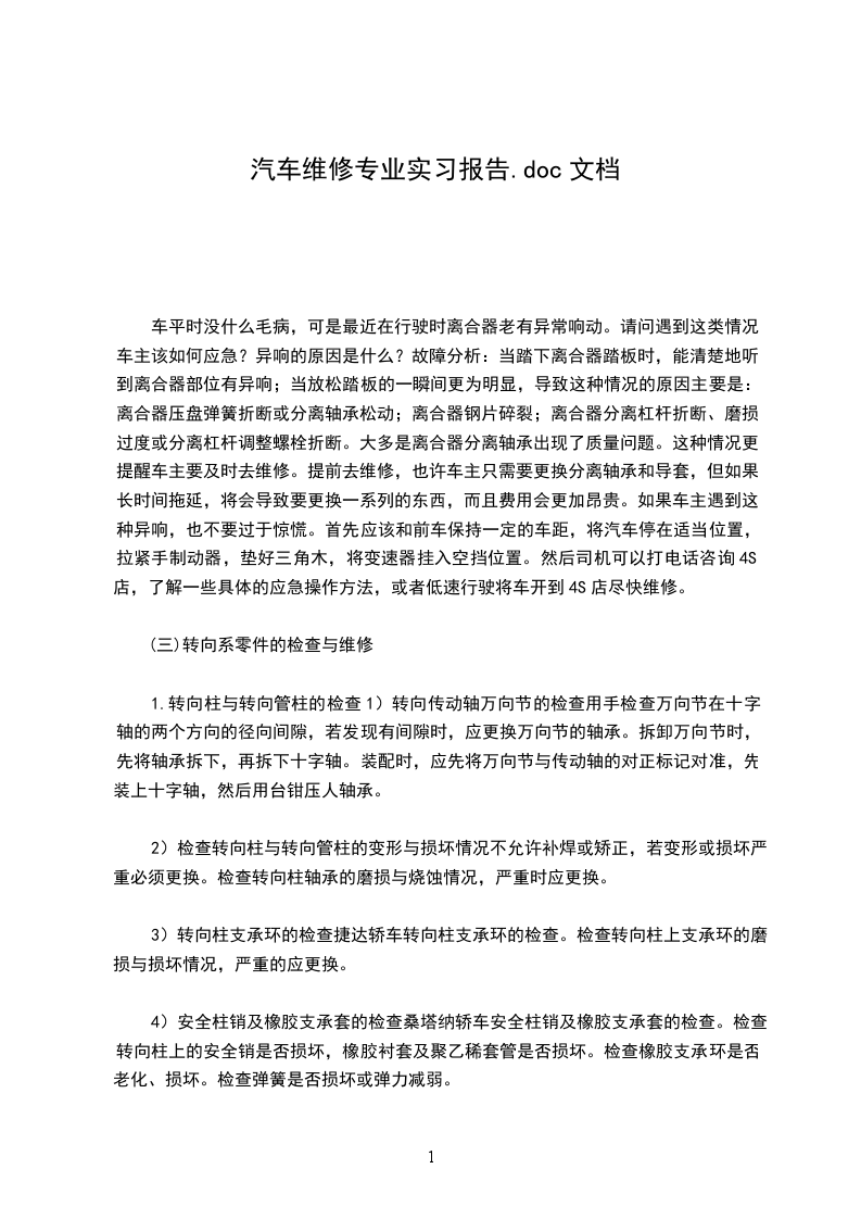 一、实习目的1.通过实行加深学生对汽车专业在国民经济中所处地位和作用的认识,巩固专业思想,激发学习热情。