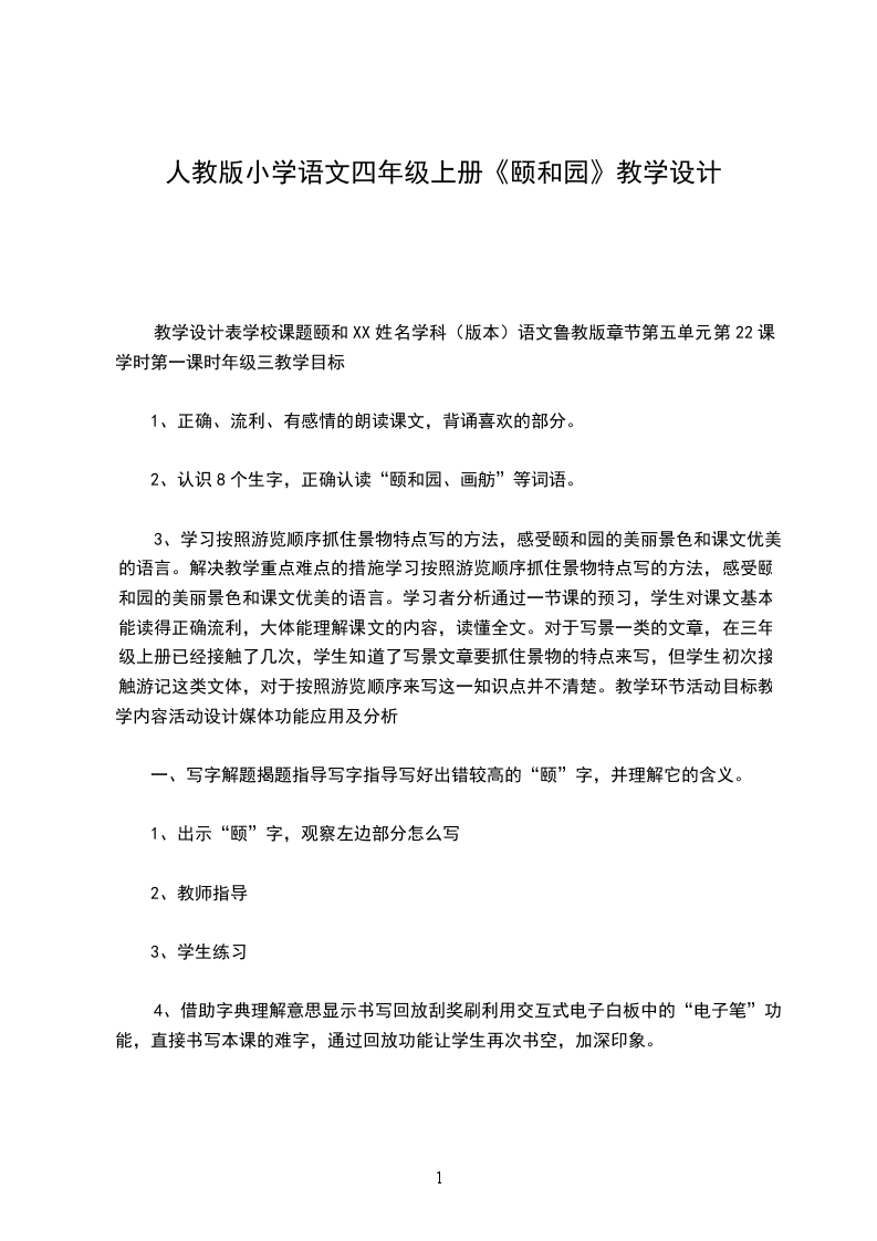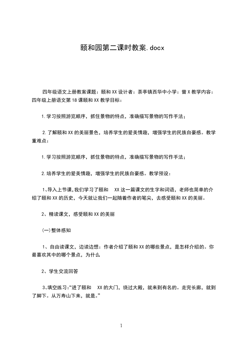 4学习课文写景状物的叙述顺序以及抓住特点描写景物的表达方法。教学重点1让学生了解颐和园的美丽景观,感受古代劳动人民的智慧和才干,激发民族自豪感。
