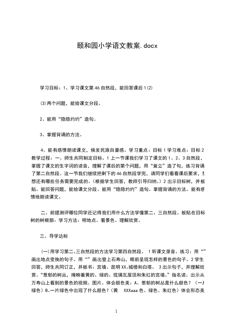 小学语文第七册教案-颐和园颐和XX教学目标1认识本课的15个生字,学会其中的13个。