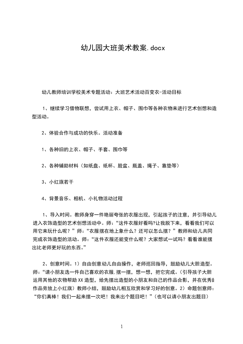 幼儿教师培训学校美术专题活动:大班艺术活动百变衣-活动目标