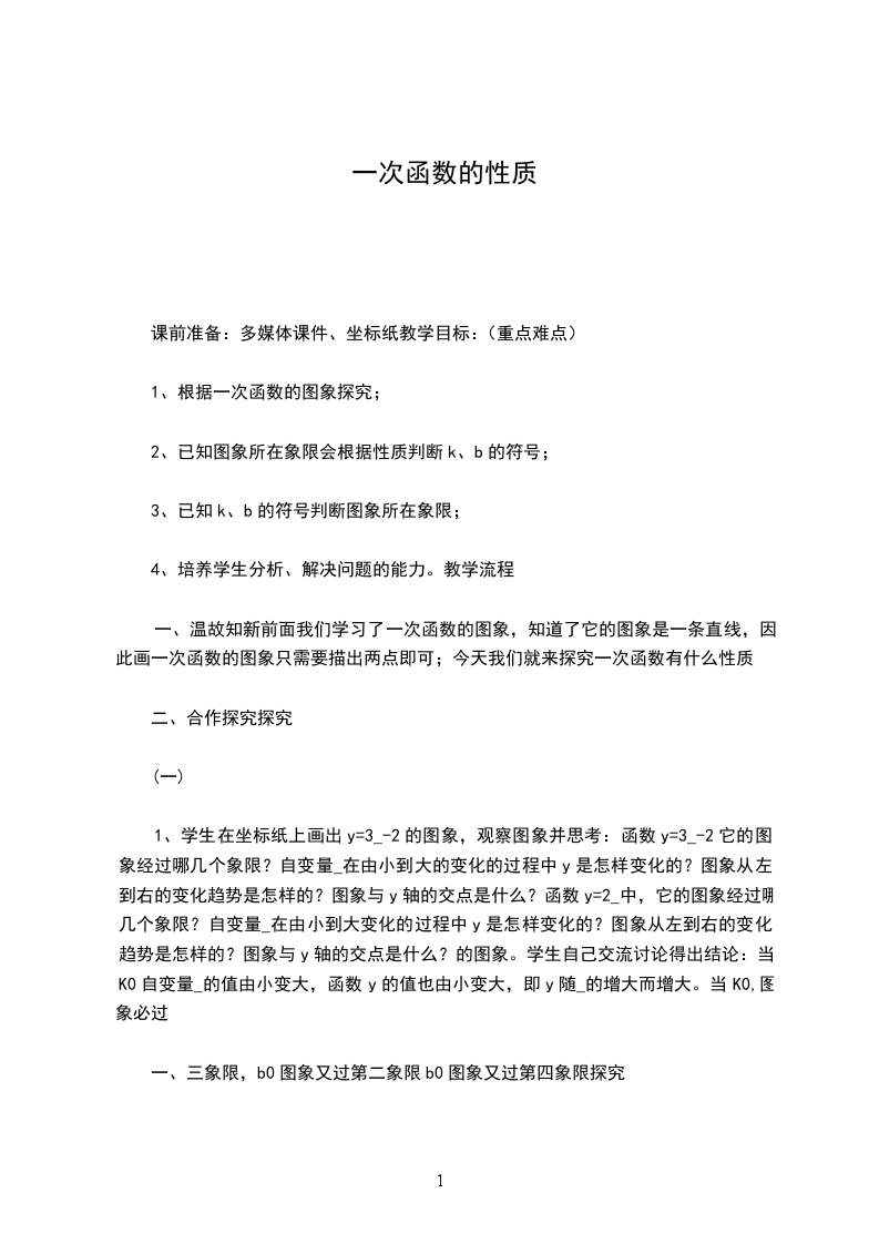 (一)创设情境、激发兴趣播放乌鸦喝水的影片,创设一个轻松愉悦的学习环境,让学生感受到童年的乐趣,引导学生观察并思考:当乌鸦不断往瓶中加石头时,瓶中的水是怎样变化?瓶中水位的变化是随谁的变化而变化?通过学生的思考和老师的分析引导不难引出课题一元一次不等式与一次函数设置意图:播放乌鸦喝水的flash动画影片让学生身临其境,回想童年的故事,并分析故事中蕴含的数学知识,学生的学习热情油然而生。教师点拨:当乌鸦往瓶子中加石头时,瓶中的水的变化学生可能有不同的理解,教师指导学生假定加入的石头是大小均匀的,水位的上升与石头数量的关系有怎样的关系?