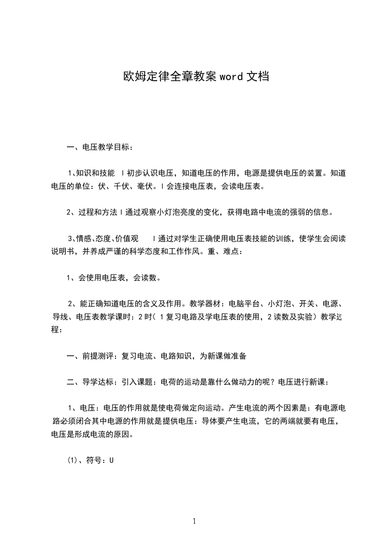 欧姆定律全章教案word文档
