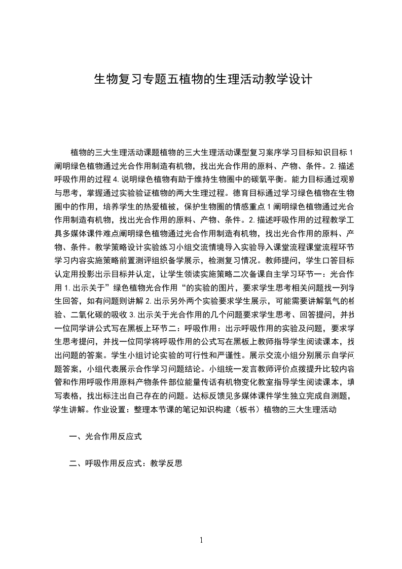 二、呼吸作用反应式:教学反思