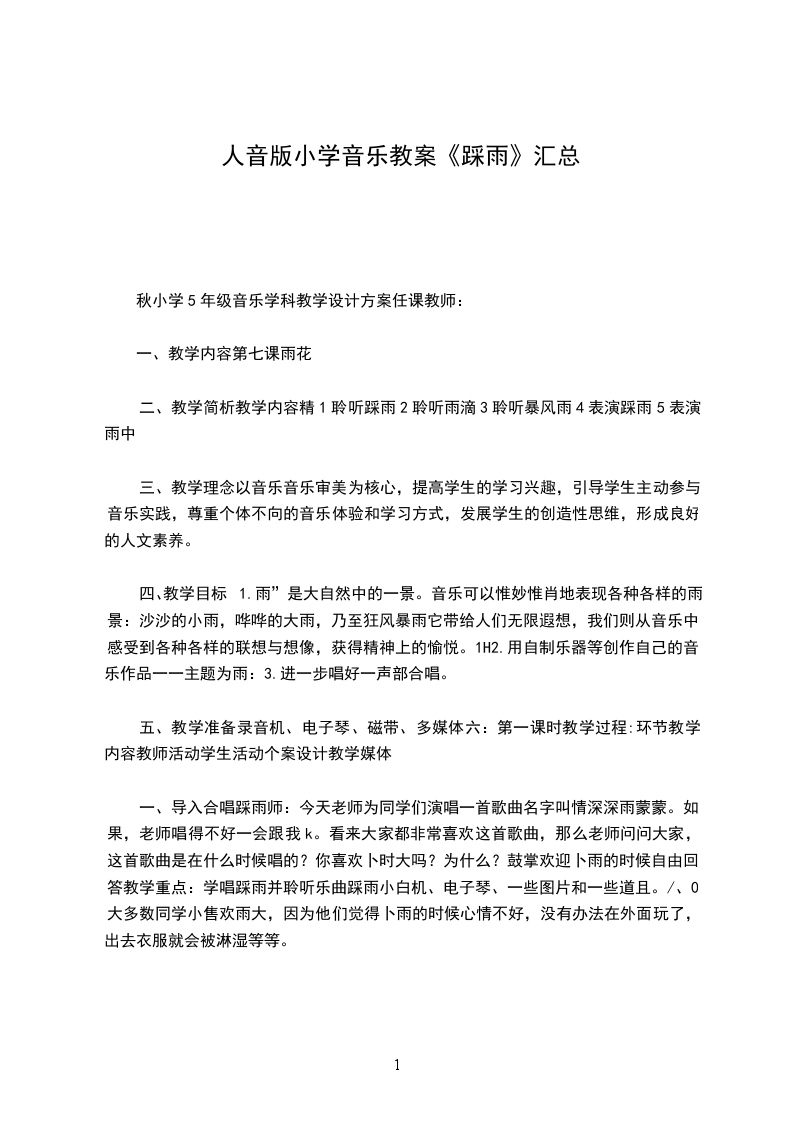 二、教学简析教学内容精1聆听踩雨2聆听雨滴3聆听暴风雨4表演踩雨5表演雨中
