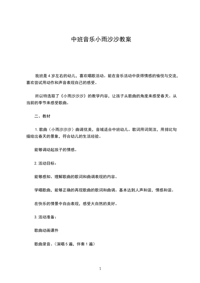 四、教学目标1.雨”是大自然中的一景。音乐可以惟妙惟肖地表现各种各样的雨景:沙沙的小雨,哗哗的大雨,乃至狂风暴雨它带给人们无限遐想,我们则从音乐中感受到各种各样的联想与想像,获得精神上的愉悦。1H2.用自制乐器等创作自己的音乐作品一一主题为雨:3.进一步唱好一声部合唱。