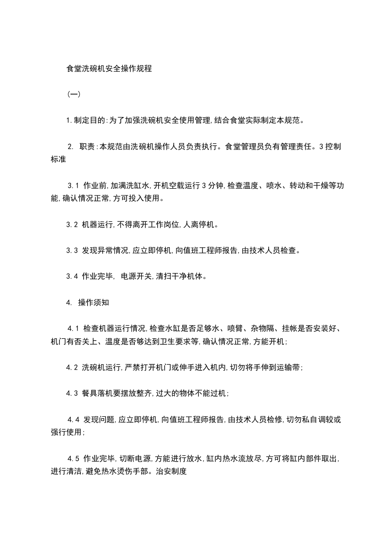 职工食堂馒头机安全操作规程_规章制度职工食堂馒头机安全操作规程_规章制度职工食堂馒头机安全操作规程1.制定目的:为了加强馒头机安全使用管理,结合食堂实际制定本规范2.职责:本规范由馒头机操作人员负责执行。食堂管理员负有管理责任。3控制标准3.1该机必须由专人操作和管理。3.2开机前要认真进行检查,发现故障应立即报修,不准继续使用。作业前检查机内挤压杆有无杂物,3.3操作机器前将宽大衣裙紧束好,女同志的长发要卷入工作帽内。启动机器时,手不能潮湿和戴手饰。3.4关好各护盖板,插合电捅头。操机时精神要集中,不准嬉笑打闹。机器运转时,不准将身体和其它器具探入转动部件内。35添加面粉,用少量面团作机械调试,调试中应紧定螺栓,检奄有无杂物,关上护板再进行作业。调试时应掌握松紧适度,必要时加少量润滑油,不允许硬敲硬撬。33.6馒头机运转中要掌握好面粉、面团的比例是否适中,随时通过观察窗挤压状况;并通过检测己成型馒头的软硬度,确定增添、减面粉、面团的投放量。3.7当作业完毕时,要用适量硬度强的面团,进行反复投放挤压,然后停机拆卸清洗,并用木、竹片清除杆槽内残留物,再用干洁抹布擦拭。不得用金属物乱撬或挤压。3.8当试机调整或运行过程中发现异常现象应停止操作,应即断开电源,并向管理人员反映或报修。3.9工作结束后,要将机器清洗于挣。清理前,必须先将机器电源切断,不准用水直接冲刷机器。