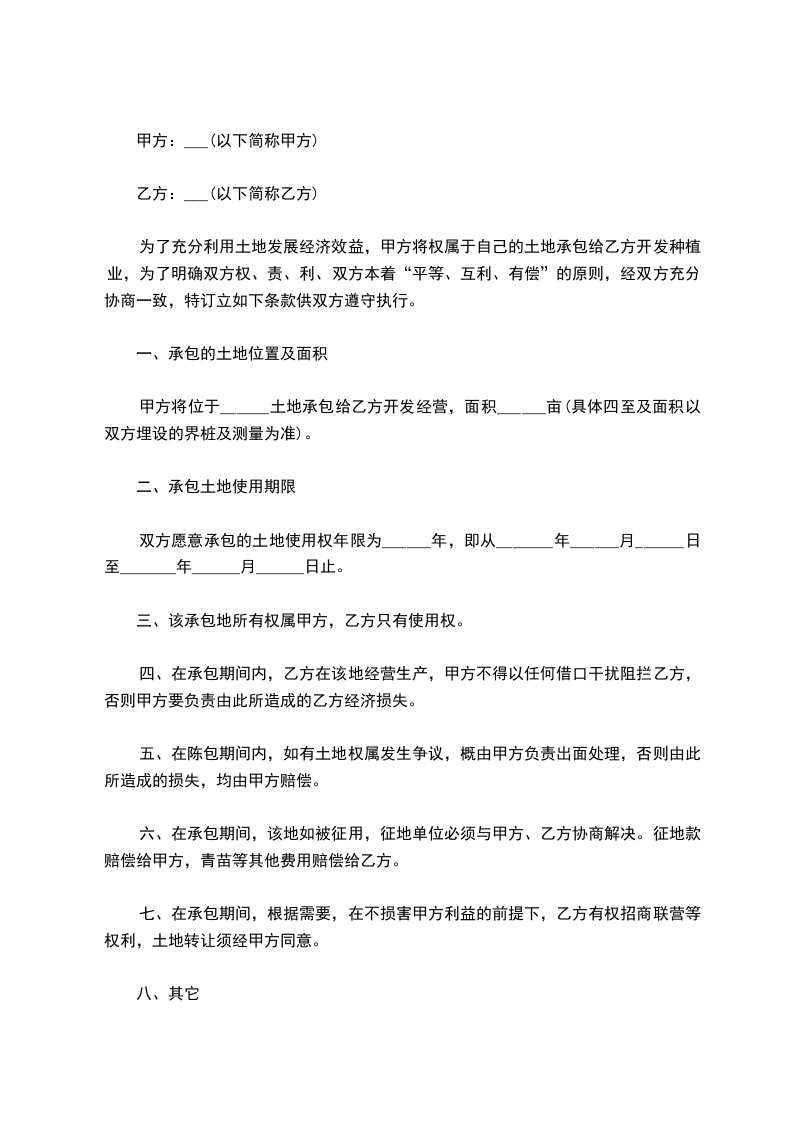 承包方:_______________(以下简称乙方)