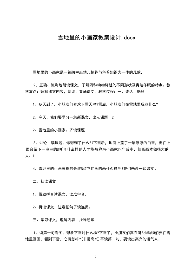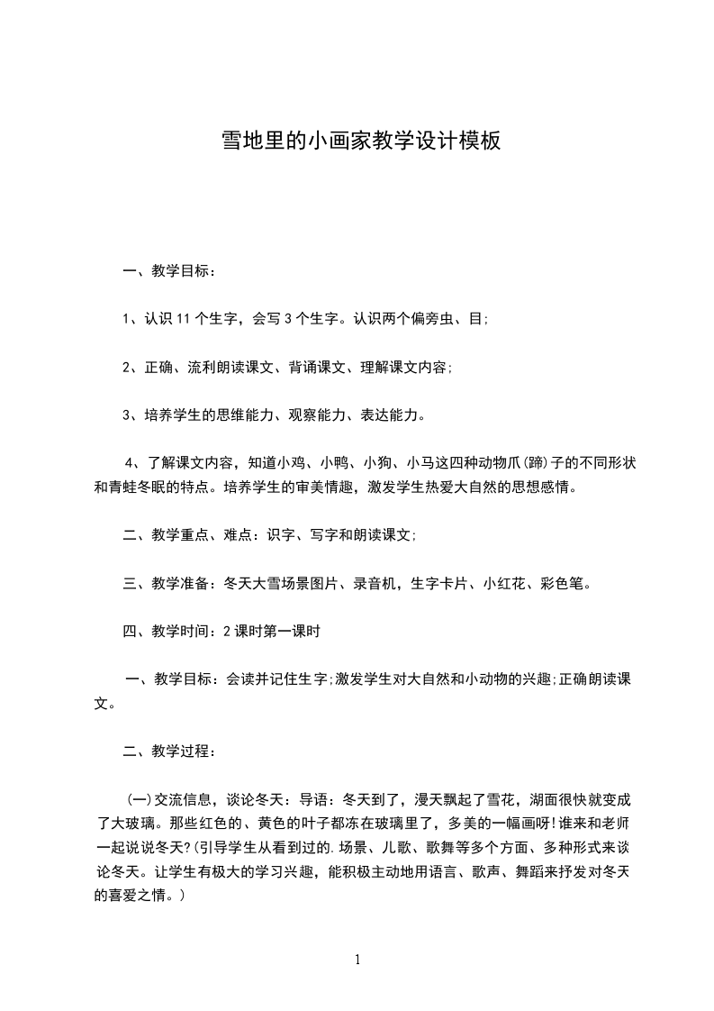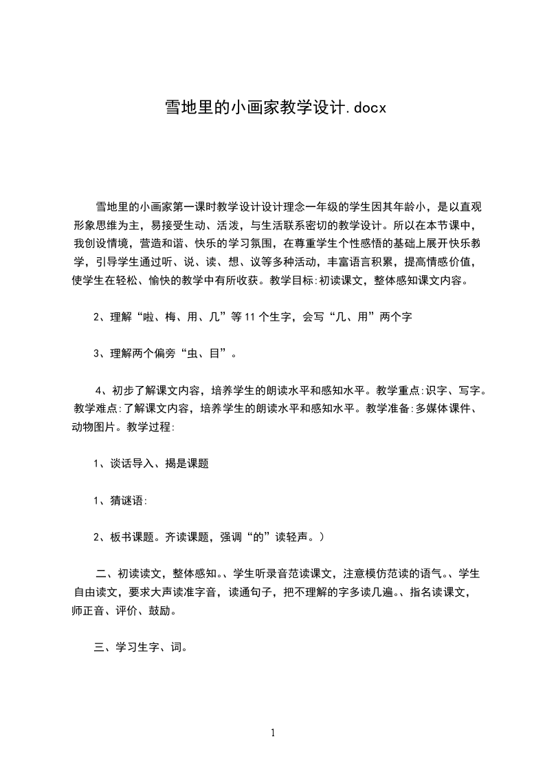 2、同桌俩互读课文,注意生字读音,想一想:雪地里的小画家都有谁?小鸡、小狗、小鸭、小马都来参加这次美丽的画展,他们都画了些什么?你们想不想参加?