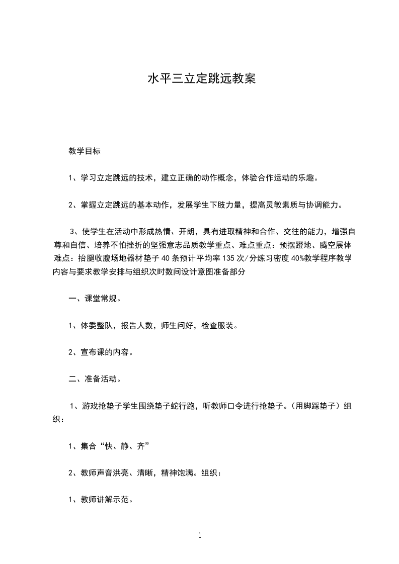 1、学习立定跳远的技术,建立正确的动作概念,体验合作运动的乐趣。
