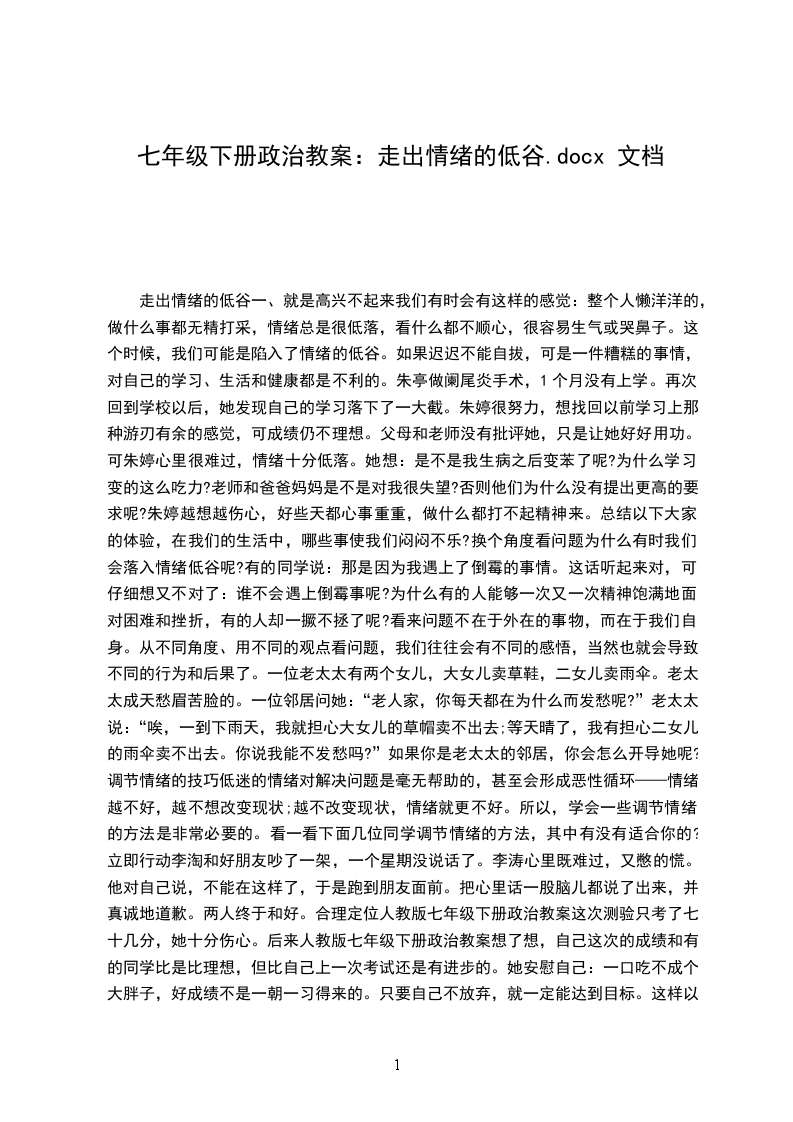 2、识记积极情绪、消极情绪对人的影响。知识记忆(咨询窗口)教材18:了解什么是健康情绪?由于中学生最常见的心理问题是情绪问题,情绪健康是判断其心理健康的标准之一。(思考探究)交流讨论:不良情绪对人的成长和健康十分不利,但情绪是可以调节的,我们可以怎样来调节自己的情绪呢?师点评学生的发言,并归纳调节情绪的方法