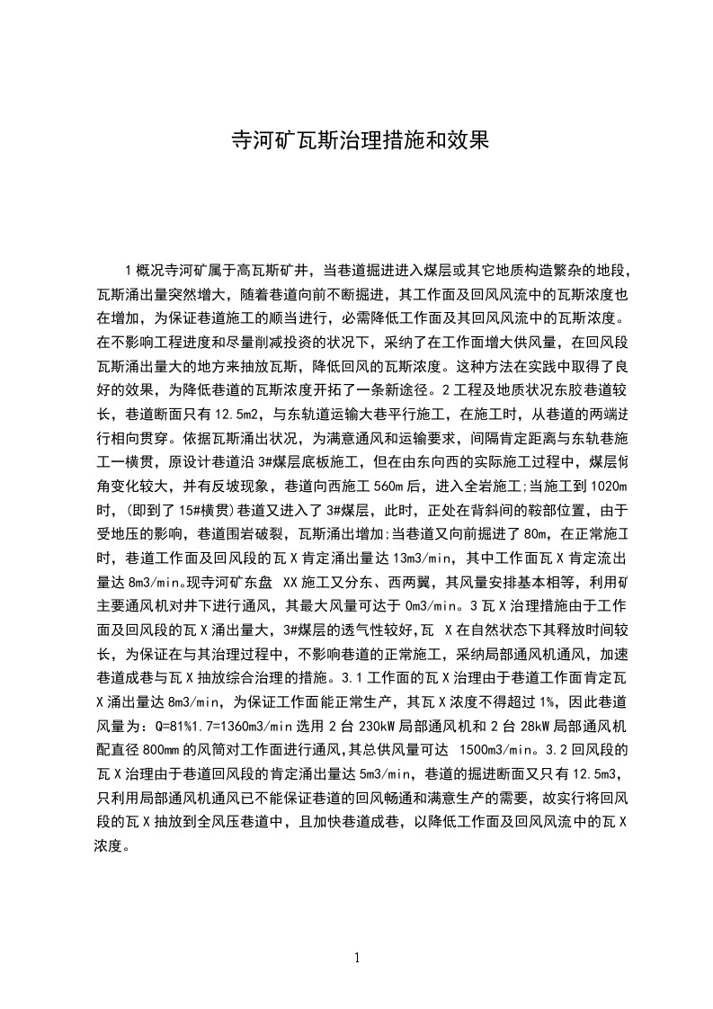 (2)在利用局部通风机通风和瓦斯抽放综合治理瓦斯后,保证了工作面的正常施工,确保巷道的顺当贯穿,为寺河矿早日出煤制造了条件。