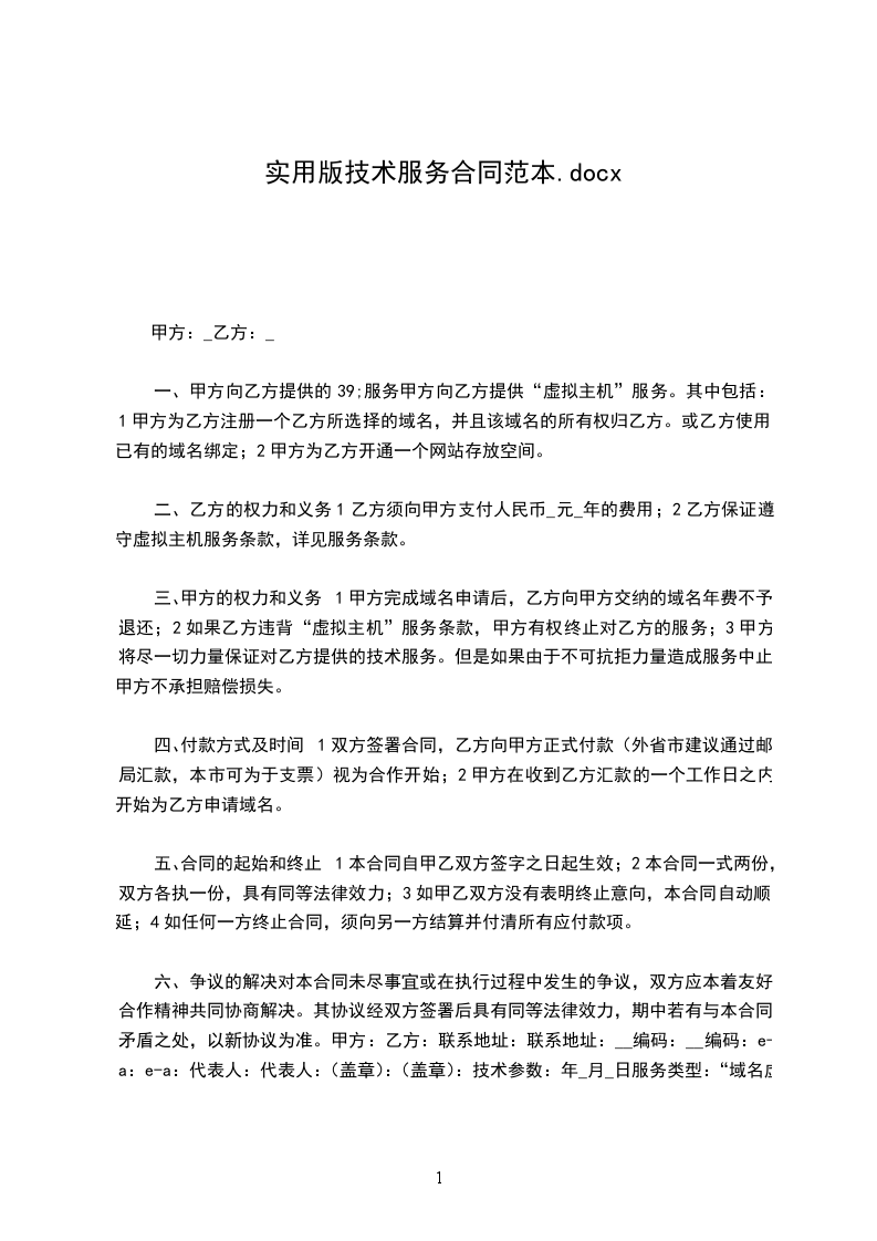 二、乙方的权力和义务1乙方须向甲方支付人民币_元_年的费用;2乙方保证遵守虚拟主机服务条款,详见服务条款。
