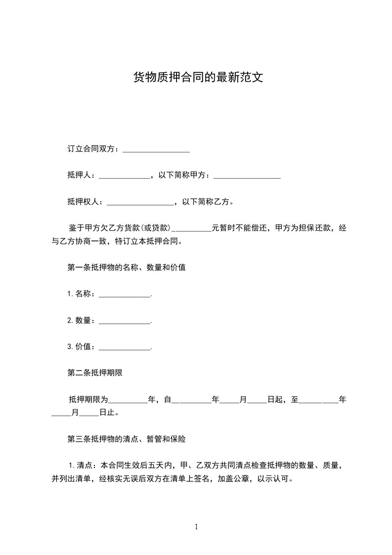 1.清点:本合同生效后五天内,甲、乙双方共同清点检查抵押物的数量、质量,并列出清单,经核实无误后双方在清单上签名,加盖公章,以示认可。