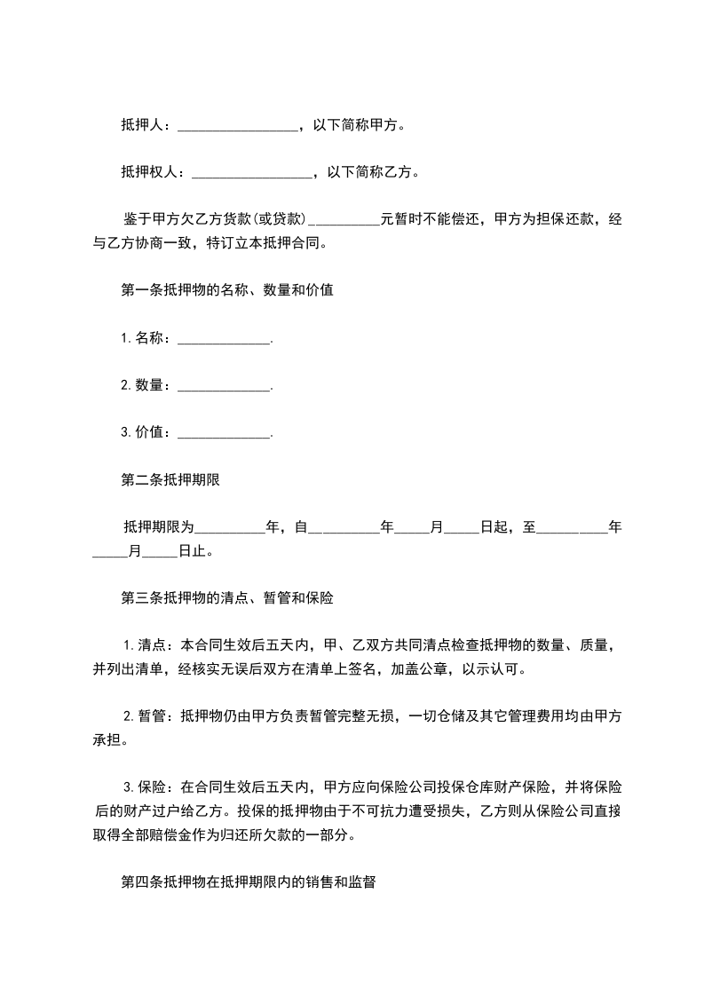 2.暂管:抵押物仍由甲方负责暂管完整无损,一切仓储及其它管理费用均由甲方承担。