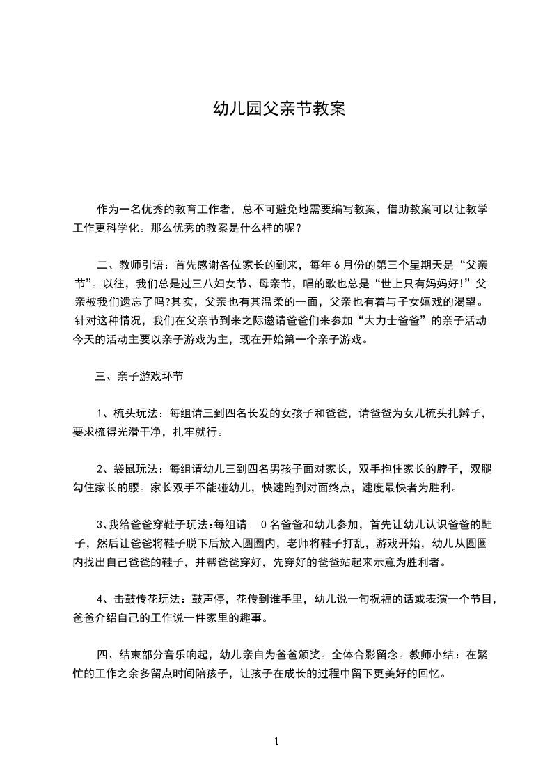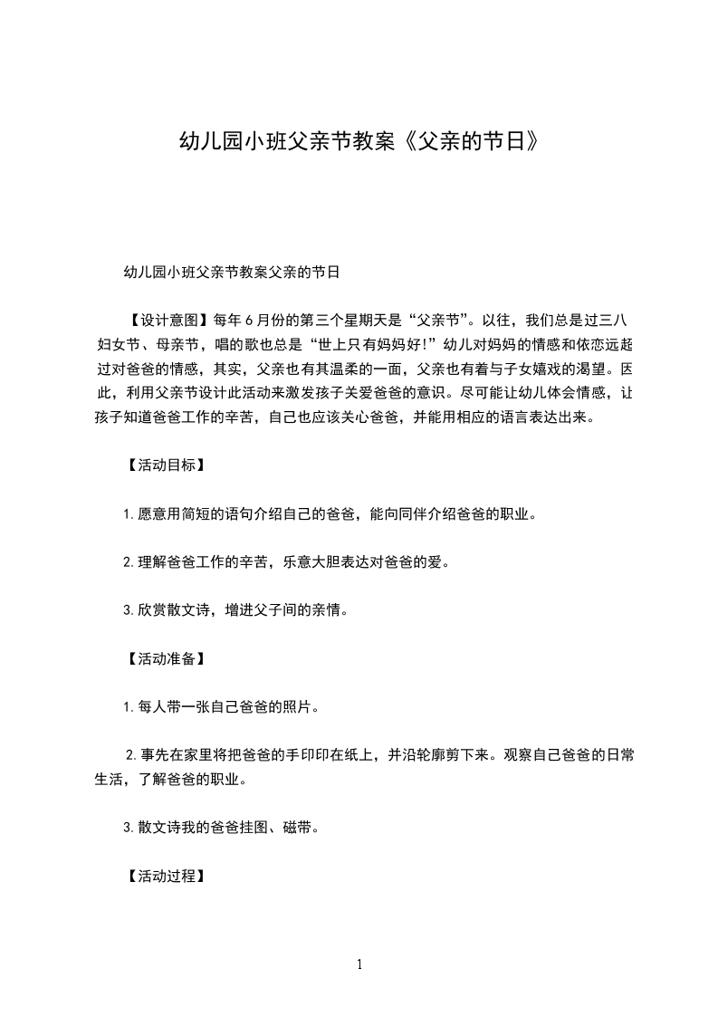2、成功素质节日主题教材、节日主题音乐六活动过程;、教师向幼儿介绍父亲节的来历。