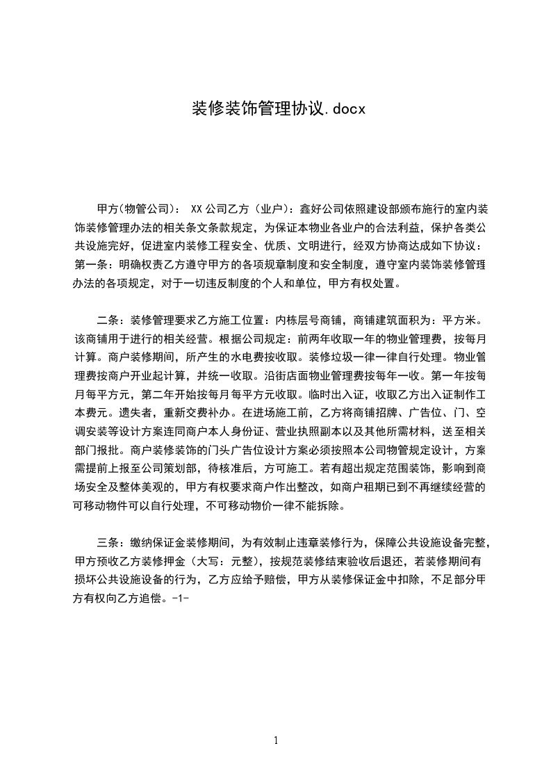乙方在平等、自愿、协商一致的基础上,经双方现场测算装修工程量,现就甲方的_装饰装修工程的有关事宜,达成如下协议