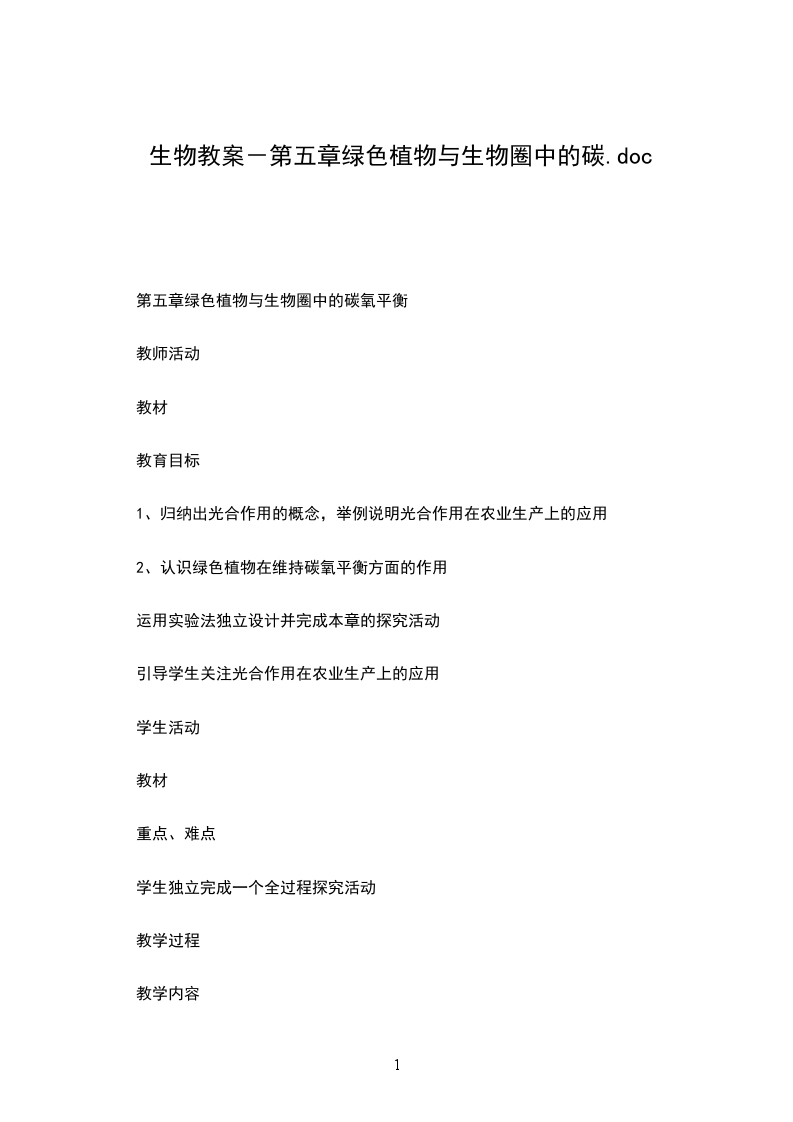 课题第二节绿色植物与生物圈的物质循环教学目标