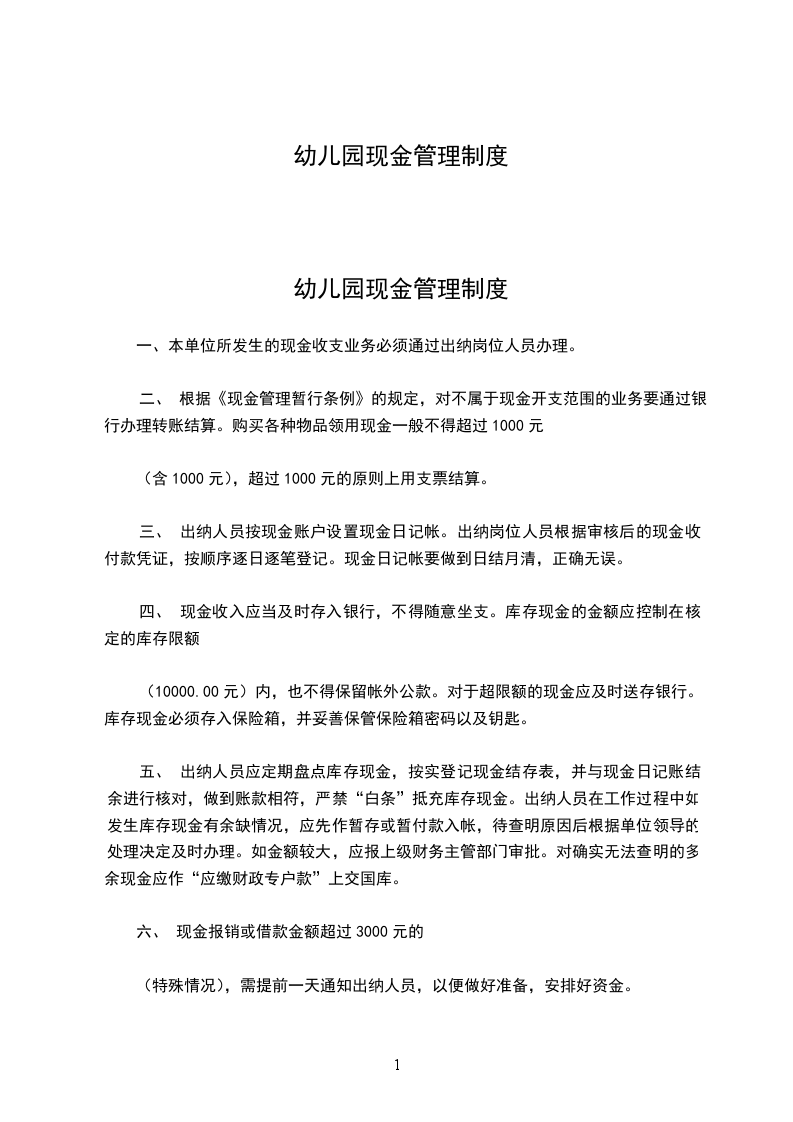 第二条为便于零星支付起见,可设零用金,采用定额制,其额度由总经理核定,其零用金由出纳经管。