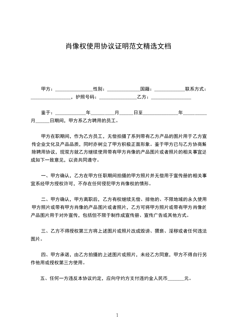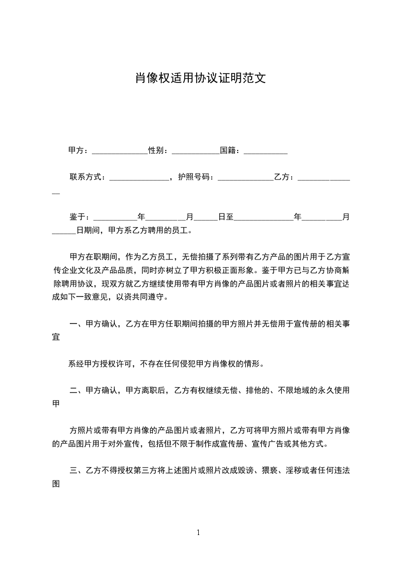 一、甲方确认,乙方在甲方任职期间拍摄的甲方照片并无偿用于宣传册的相关事宜