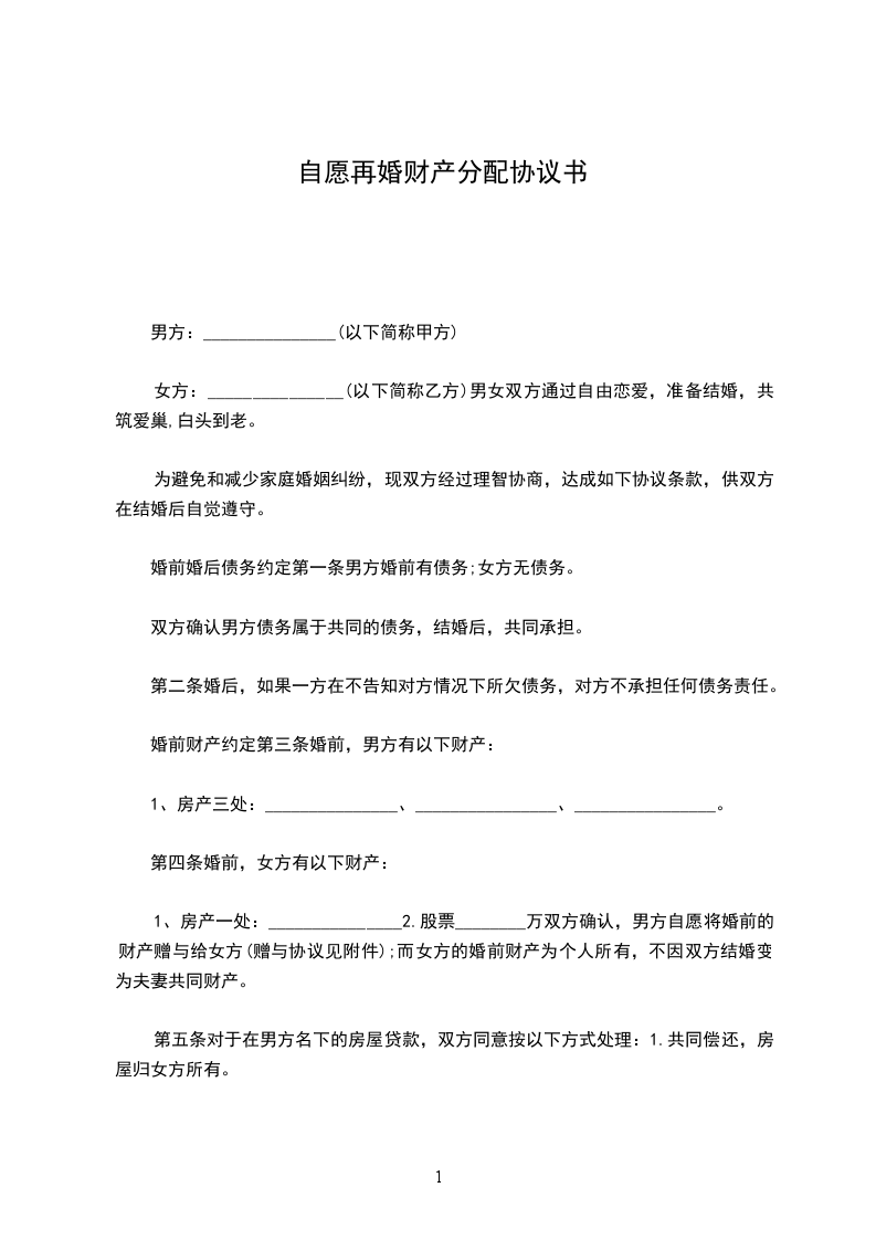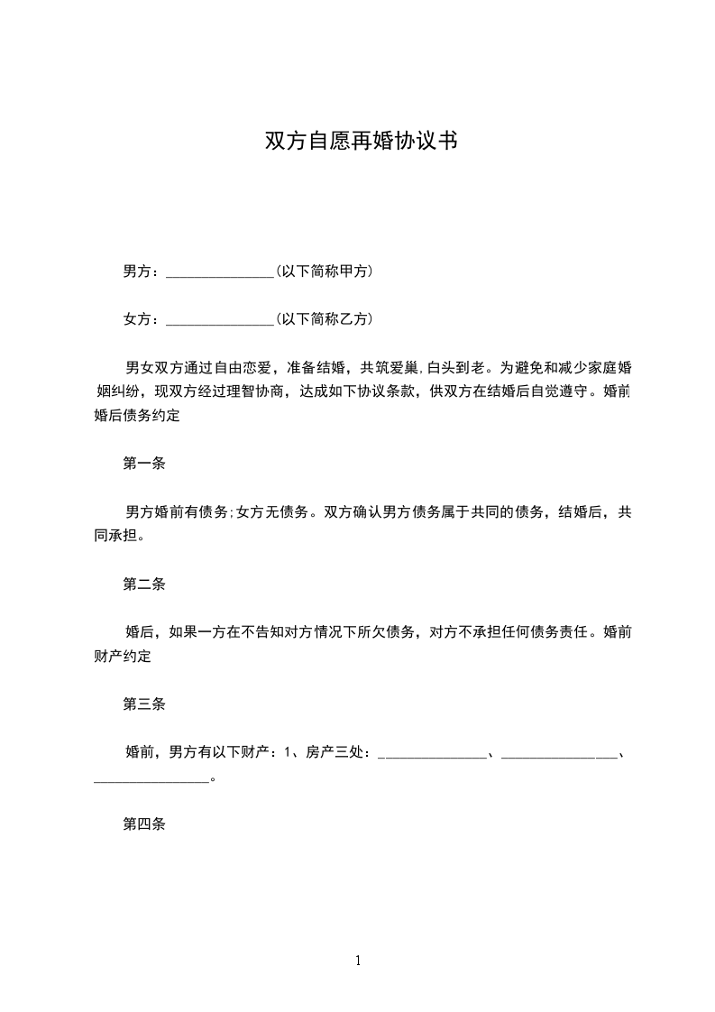 男方:_______________(以下简称甲方)