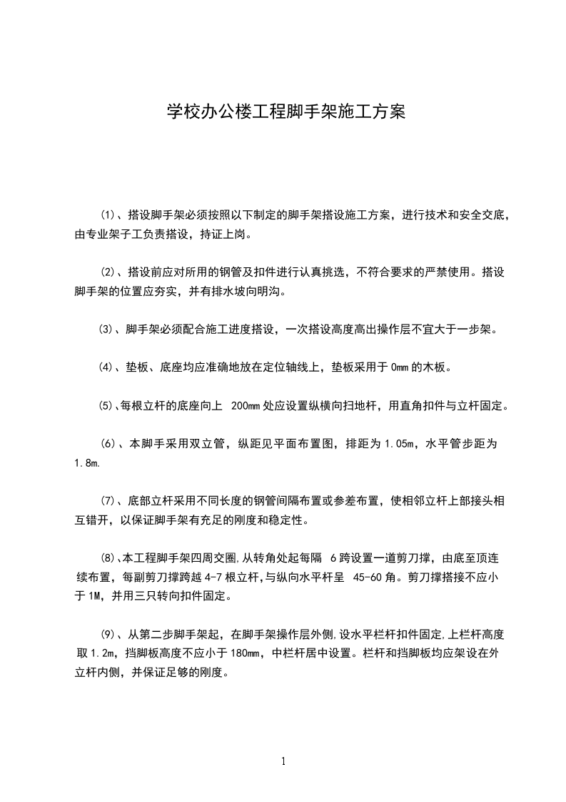 (1)、搭设脚手架必须按照以下制定的脚手架搭设施工方案,进行技术和安全交底,由专业架子工负责搭设,持证上岗。