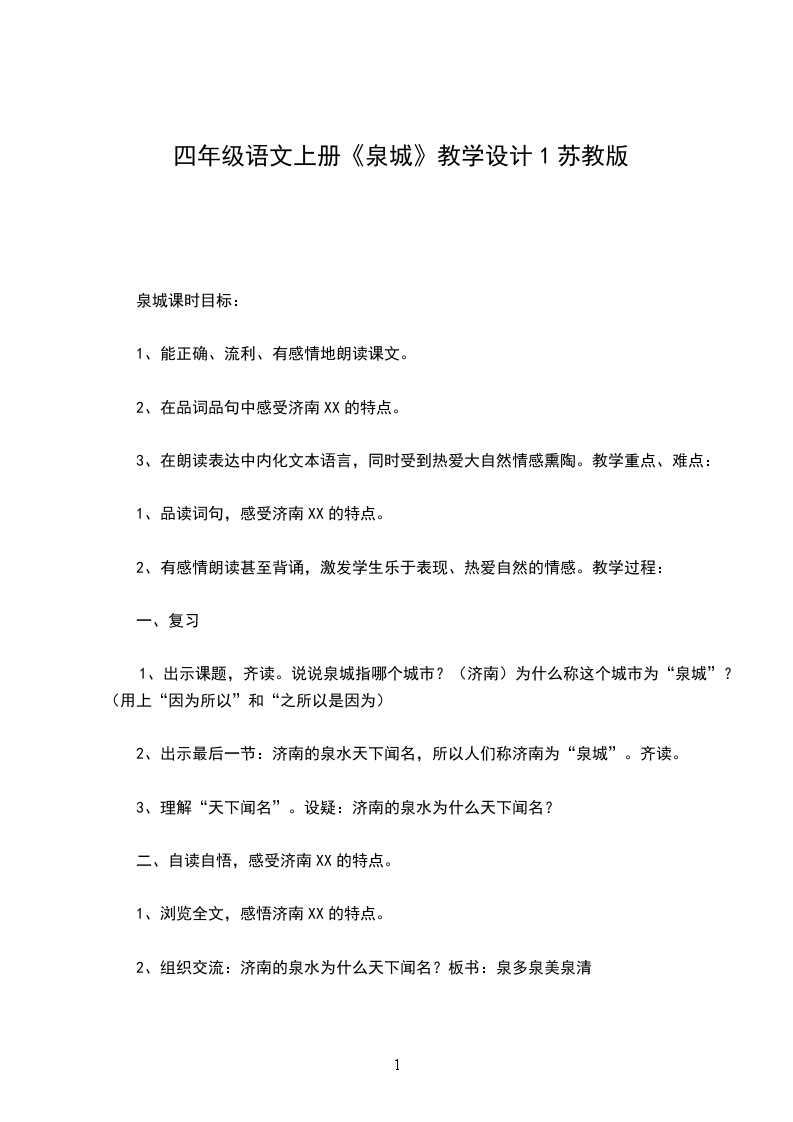 1、浏览全文,感悟济南XX的特点。