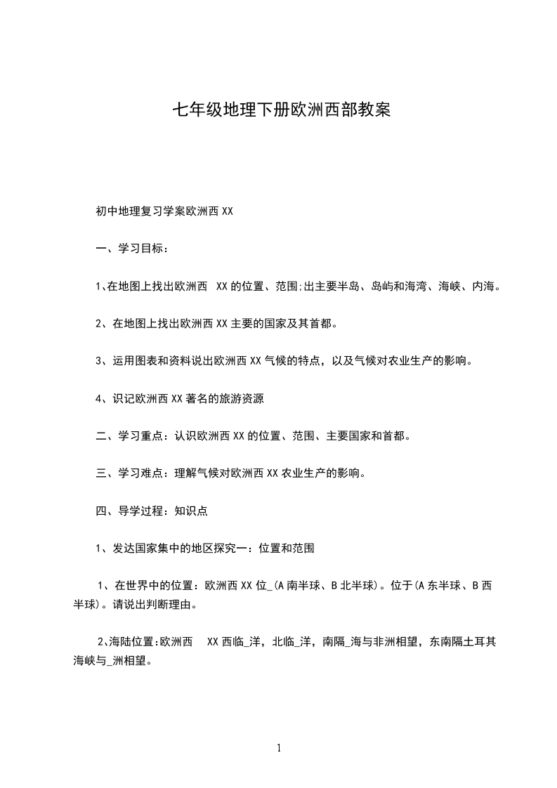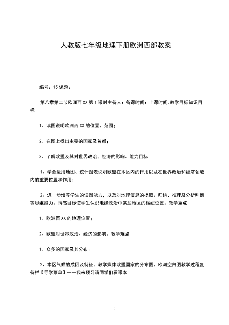 第八章第二节欧洲西XX第1课时主备人:备课时间:上课时间:教学目标知识目标