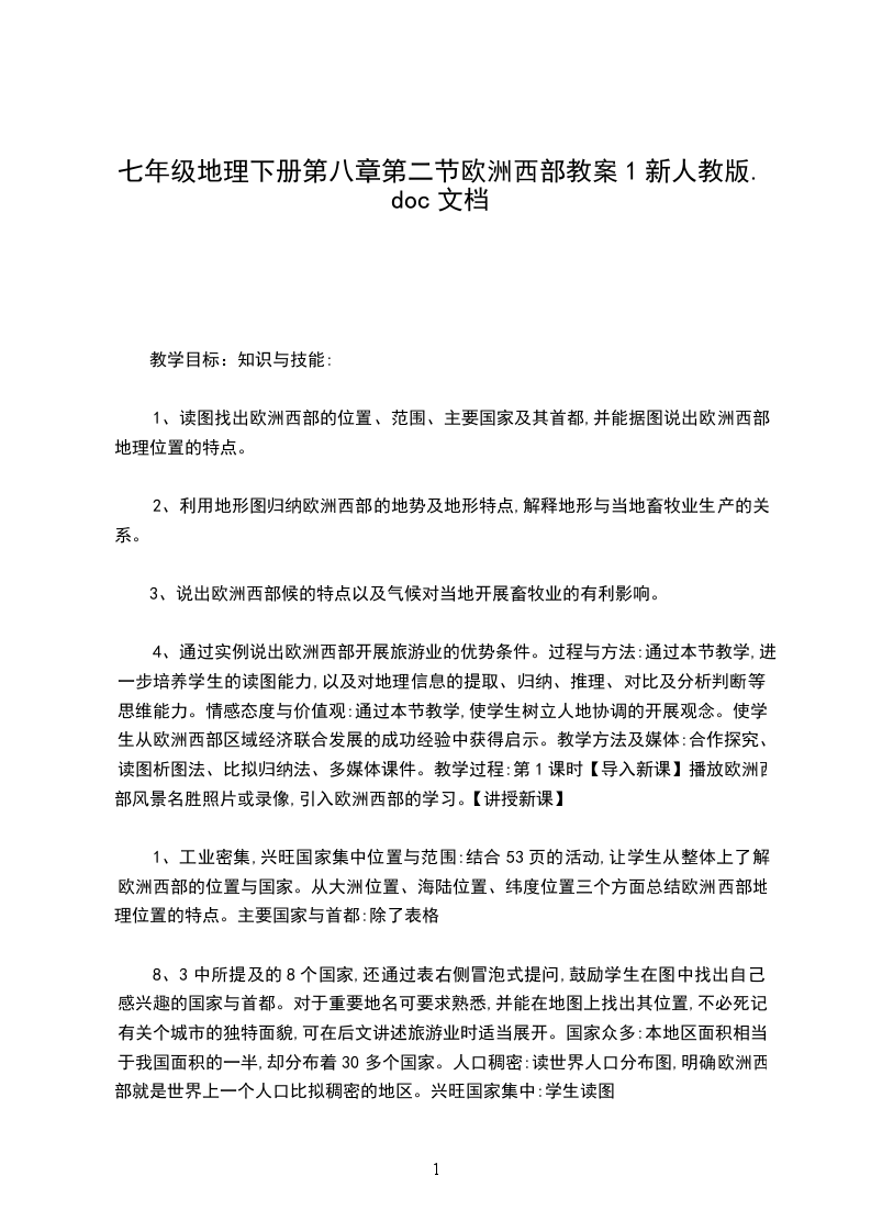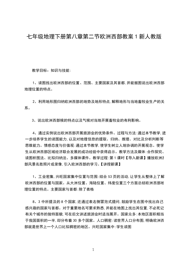 2、记住欧洲西XX地区主要旅游资源的分布。能力目标通过读图分析本区的位置、地形和气候,归纳总结出欧洲西XX发展传统畜牧业的优越条件,明确独特的自然环境对地区农牧业有重要影响的规律。情感目标树立人地协调的观念,并使学生从欧洲西XX区域经济发展的成功经验中获得启示,得以借鉴。教学重点