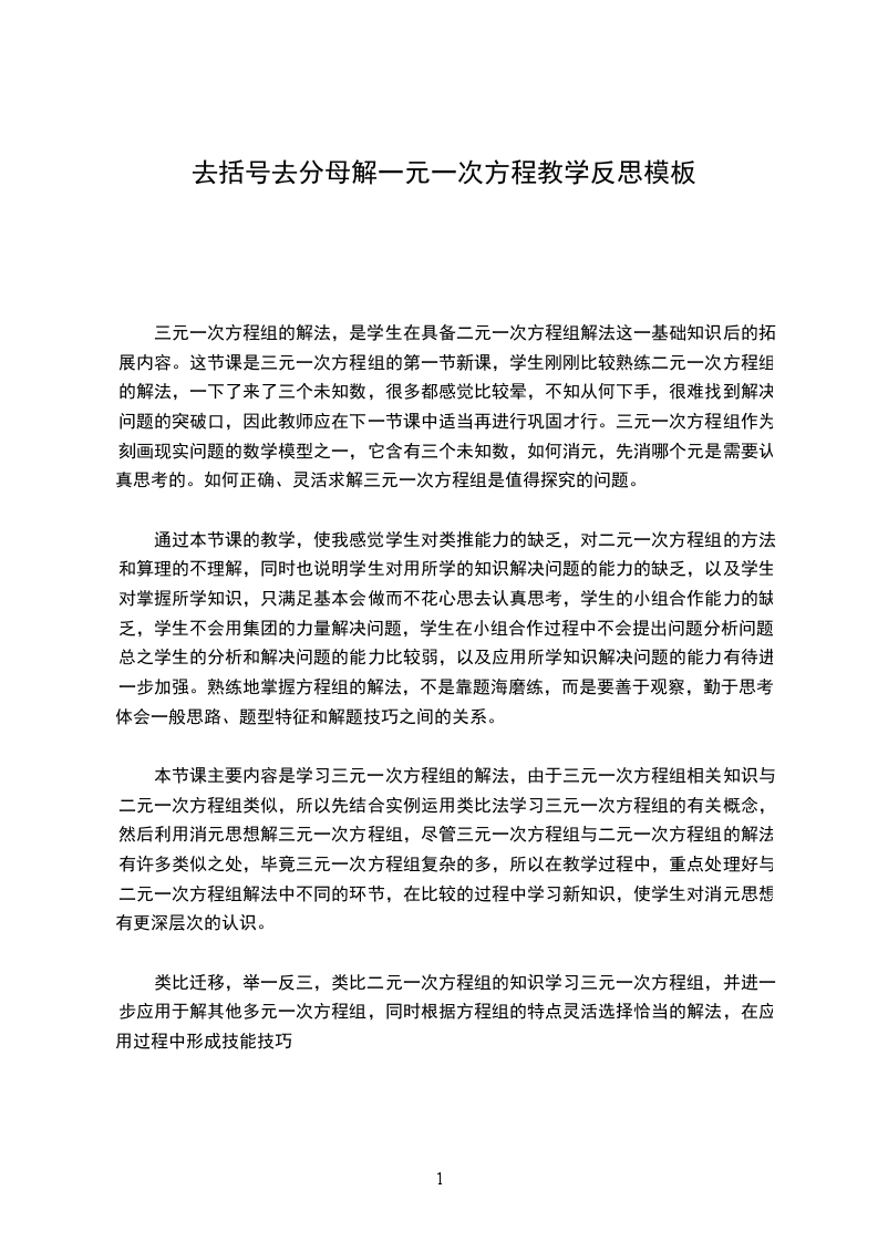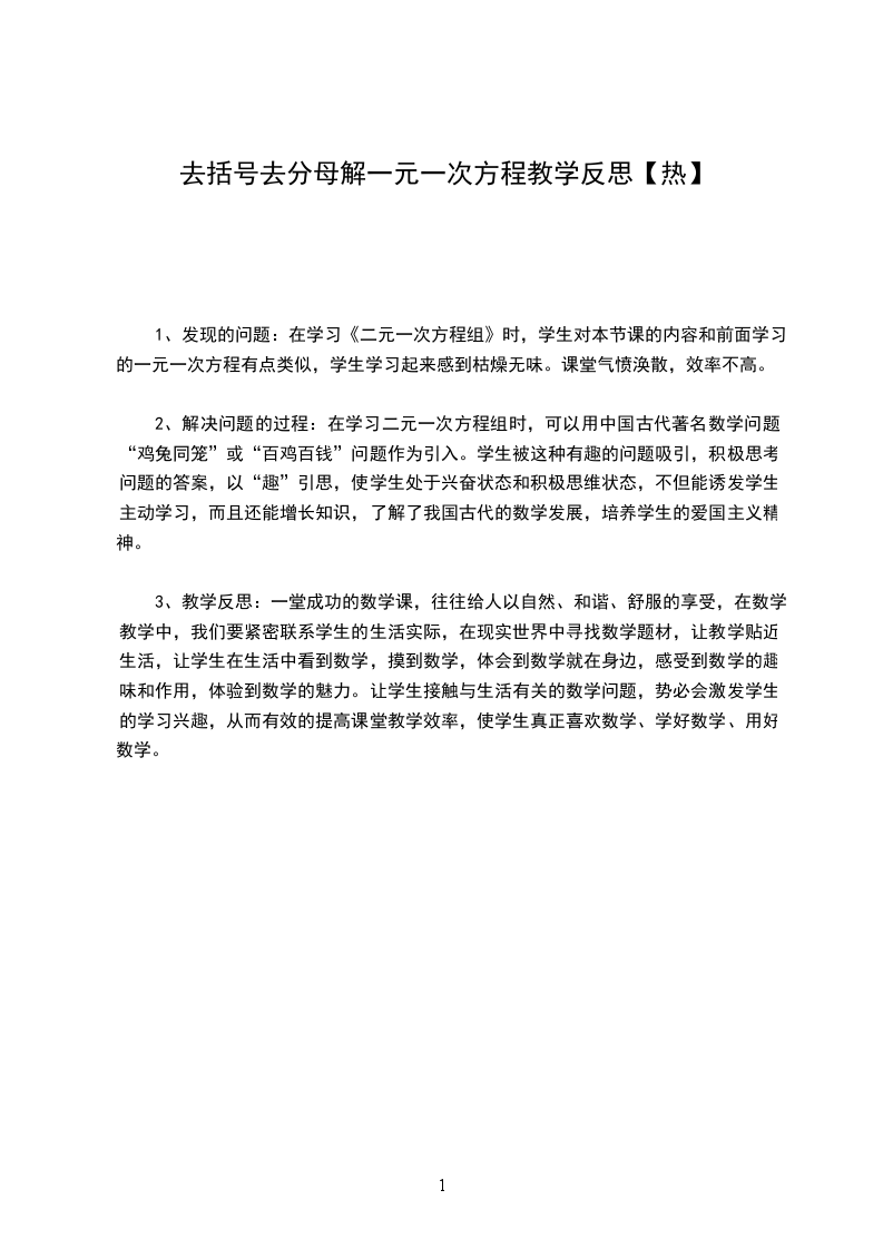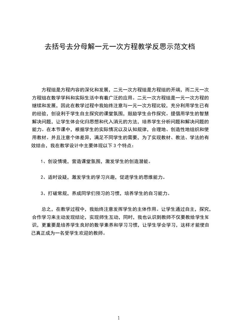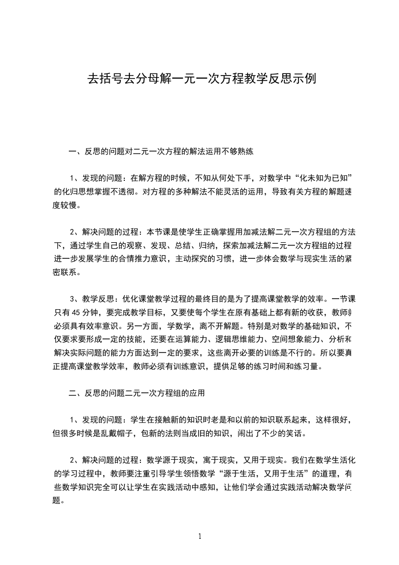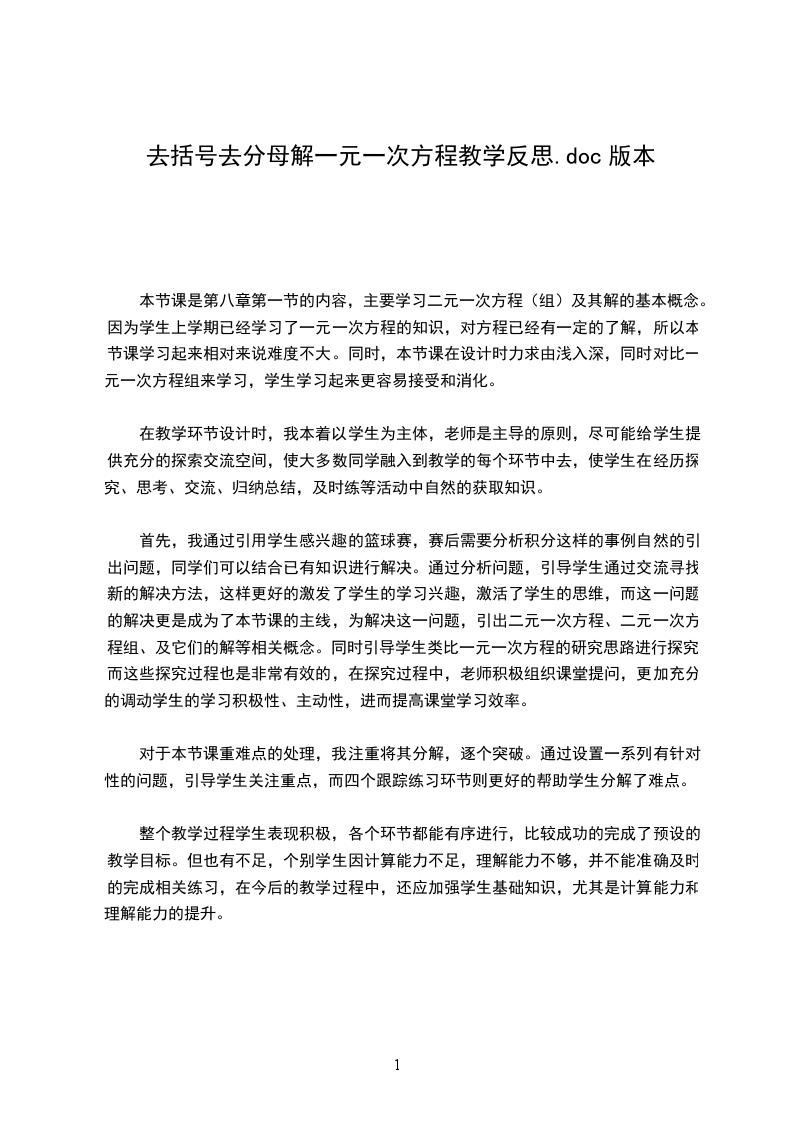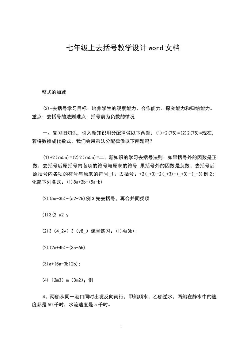 (1)学生经过观察、合作交流、讨论总结出去括号的法则,弁较为牢固地掌握