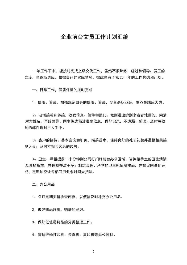 前台营业员工作计划1__年10月,很荣幸被选进公司,做前台营业员。前台营业员是展现公司形象的第一人,在工作中,我严格按照公司要求,工装上岗,热情对待每一位来访客联通营业厅的客户。接触客户多,需要协调的事情多,除了正常的收费、办理业务等工作外,在接待用户、开展业务、协调关系、化解矛盾、咨询、受理投诉等也发挥着作用。这两个月来,各方面都有了很大的进步。在办理业务和解答客户问题方面积累了很多经验,能够及时准确的为客户提供满意的服务。工作中严格要求自己,保持很强的责任心,谨慎的工作态度和良好的心态。不断加强业务学习,努力提高业务水平和协调能力。工作中,热情服务,做到以诚相待、以心换心;靠一点一滴的细致工作赢得客户信赖。爱岗敬业,爱护集体荣誉。有着很强的团队精神,跟同事关系融洽,得到了大家的信任.积极参加公司组织的培训学习.刻苦钻研,努力提高业务水平。在工作中,我虽然努力,但距离公司领导的要求还有不小差距,有很多不足之处,如理论水平、工作能力上还有待进一步提高,对新的工作岗位还不够熟悉等等,这些问题,我决心在今后的工作中努力加以改进和解决,加强学习,使自己更好地做好本职,争取更大的进步,为公司做出更大的贡献。针对以上存在的不足和问题,在新的一年中我打算做好以下几点来弥补工作中的不足。一,多和同事沟通交流,解决工作中出现的问题,以及将自己处理不了的问题反应到上级。二,踏实做好本职工作,面对新的一年,我将以更加积极的工作态度更加热情的工作作风把自己的本职工作做好。三,全方位的提高自己的工作能力和工作水平以及用良好的心态来迎接每一天。四,在工作中任劳任怨力争“没有最好只有更好”。五,继续在做好本职工作的同时,为公司做一些力所能及的工作为公司做出应有的贡献。自来到联通公司那天起,我就给自己制定了一个目标,那就是:无论做什么,干,就要干好,就要做到比别人优秀,我相信自己的能力,我也自信,经过努力,我一定能成功。__年即将过去,充满挑战和机遇的__年即将来临,在新的一年里,我将总结经验,克服不足,加强学习,为公司的发展壮大贡献自己的绵薄之力。前台营业员工作计划2时光飞逝,不知不觉又迎来新的一年。在即将过去的__年里,我在公司领导和同事的关心帮助下,顺利完成了相应的工作,现对__年的工作做一个计划。__年10月,很荣幸被选进公司,做前台营业员。前台营业员是展现公司形象的第一人,在工作中,我严格按照公司要求,工装上岗,热情对待每一位来访客联通营业厅的客户。接触客户多,需要协调的事情多,除了正常的收费、办理业务等工作外,在接待用户、开展业务、协调关系、化解矛盾、咨询、受理投诉等也发挥着作用。这两个月来,各方面都有了很大的进步.在办理业务和解答客户问题方面积累了很多经验,能够及时准确的为客户提供满意的服务。工作中严格要求自己,保持很强的责任心,谨慎的工作态度和良好的心态。不断加强业务学习,努力提高业务水平和协调能力。工作中,热情服务,做到以诚相待、以心换心;靠一点一滴的细致工作赢得客户信赖。爱岗敬业,爱护集体荣誉。有着很强的团队精神,跟同事关系融洽,得到了大家的信任.积极参加公司组织的培训学习.刻苦钻研,努力提高业务水平.存在的问题:在工作中,我虽然努力,但距离公司领导的要求还有不小差距,有很多不足之处,如理论水平、工作能力上还有待进一步提高,对新的工作岗位还不够熟悉等等,这些问题,我决心在今后的工作中努力加以改进和解决,加强学习,使自己更好地做好本职,争取更大的进步,为公司做出更大的贡献针对以上存在的不足和问题面对,在新的一年中我打算做好以下几点来弥补工作中的不足一,多和同事沟通交流,解决工作中出现的问题,以及将自己处理不了的问题反应到上级,二,是踏实做好本职工作。面对新的一年,我将以更加积极的工作态度更加热情的工作作风把自己的本职工作做好。三,全方位的提高自己的工作能力和工作水平以及用良好的心态来迎接每一天。四,在工作中任劳任怨力争“没有最好只有更好”。五,继续在做好本职工作的同时,为公司做一些力所能及的工作为公司做出应有的贡献