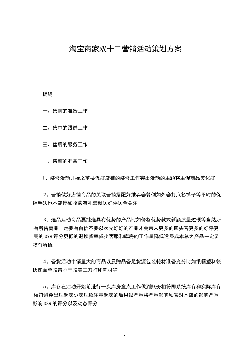 三、活动卖点XXX年最后一次大型促销活动促销力度不低于双十一2.房产5折多个城市多套全款5折、首付5折、几十万购房现金券送等史上第一次3.全场5折封顶、包邮4.江浙沪24小时到货与多家物流合作江浙沪24小时能到7天无理由退换货注重服务5.支付宝充一百送一百12月8日12日6.欧洲、北XX旅游、I4S等一元拍卖活动I4S史上最低价3999东艺茶具编辑7.聚划算0点开团千团之战8万现金免单、各种秒杀、抽奖、抢拍8.奢侈品促销到时会有奢侈品专场心动了吧您也不妨进入淘宝商家先看一下预热的活动哦