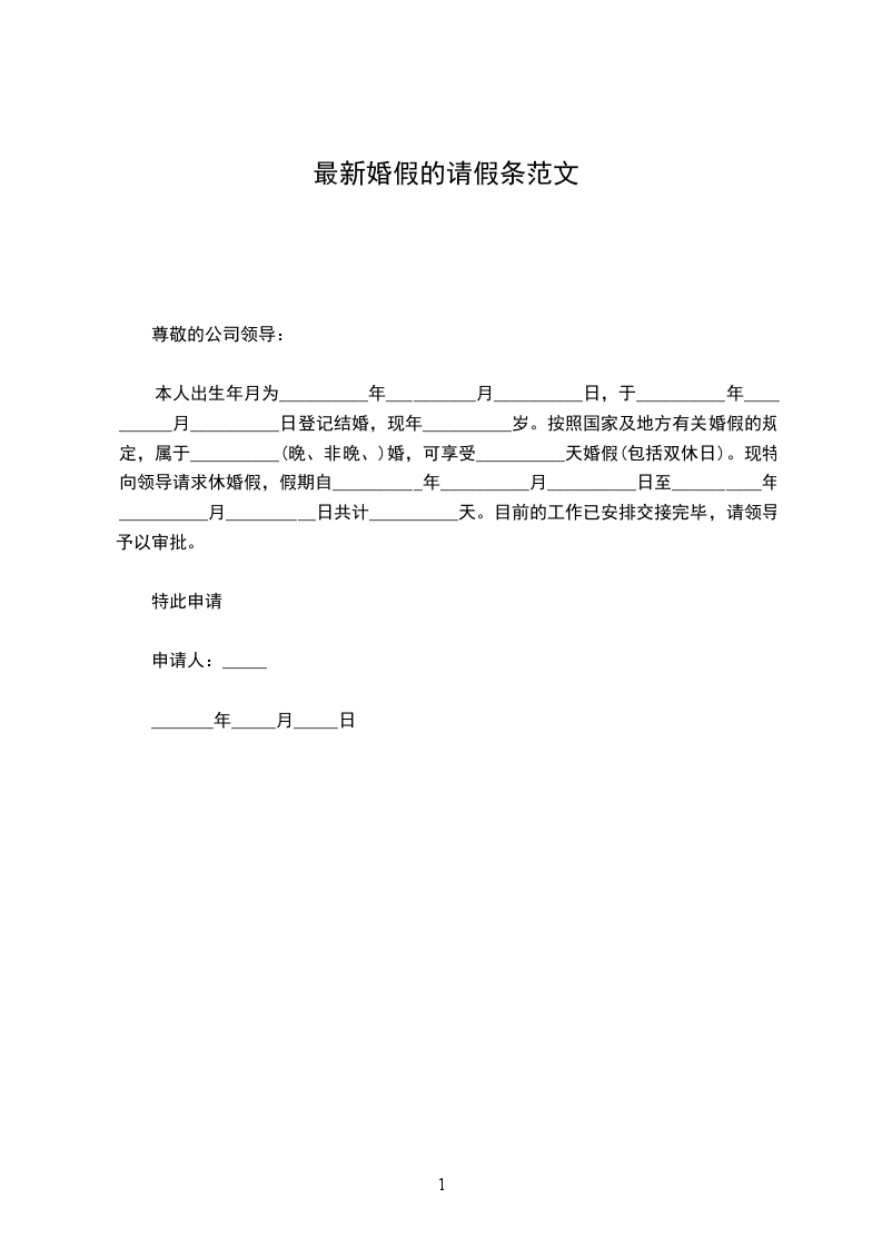 现特向领导请求休婚假,婚假自________年________月________日,至________年________月________日,共计_____天。