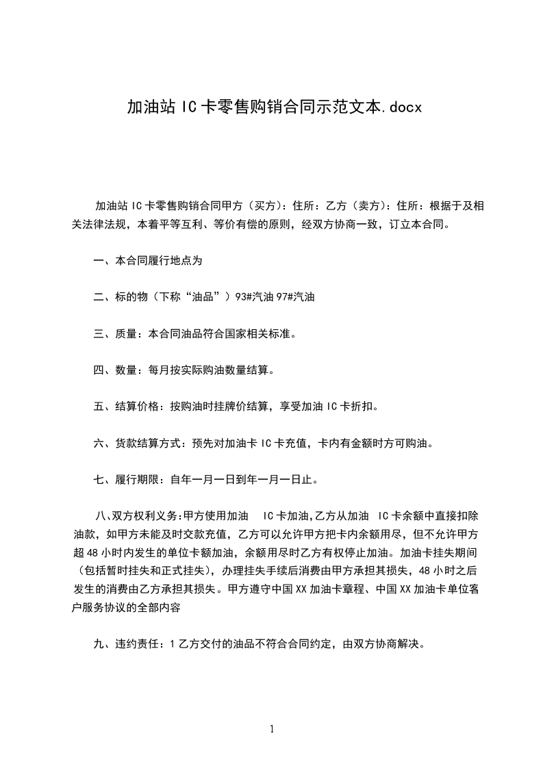 加油站IC卡零售购销合同甲方(买方):住所:乙方(卖方):住所:根据于及相关法律法规,本着平等互利、等价有偿的原则,经双方协商一致,订立本合同。