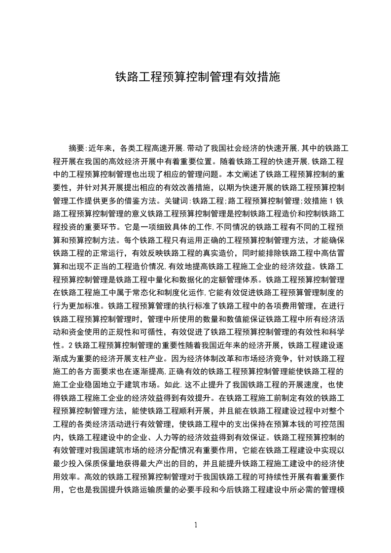 摘要:近年来,各类工程高速开展.带动了我国社会经济的快速开展,其中的铁路工程开展在我国的高效经济开展中有着重要位置。随着铁路工程的快速开展,铁路工程中的工程预算控制管理也出现了相应的管理问题。本文阐述了铁路工程预算控制的重要性,并针对其开展提出相应的有效改善措施,以期为快速开展的铁路工程预算控制管理工作提供更多的借鉴方法。关键词:铁路工程;路工程预算控制管理;效措施1铁路工程预算控制管理的意义铁路工程预算控制管理是控制铁路工程造价和控制铁路工程投资的重要环节。它是一项细致具体的工作,不同情况的铁路工程有不同的工程预算和预算控制方法。每个铁路工程只有运用正确的工程预算控制管理方法,才能确保铁路工程的正常运行,有效反映铁路工程的真实造价,同时能排除铁路工程中高估冒算和出现不正当的工程造价情况,有效地提高铁路工程施工企业的经济效益。铁路工程预算控制管理是铁路工程中量化和数据化的定额管理体系。铁路工程预算控制管理在铁路工程施工中属于常态化和制度化运作,它能有效促进铁路工程预算管理制度的行为更加标准。铁路工程预算管理的执行标准了铁路工程中的各项费用管理,在进行铁路工程预算控制管理时,管理中所使用的数量和数值能保证铁路工程中所有经济活动和资金使用的正规性和可循性,有效促进了铁路工程预算控制管理的有效性和科学性。2铁路工程预算控制管理的重要性随着我国近年来的经济开展,铁路工程建设逐渐成为重要的经济开展支柱产业。因为经济体制改革和市场经济竞争,针对铁路工程施工的各方面要求也在逐渐提高,正确有效的铁路工程预算控制管理能使铁路工程的施工企业稳固地立于建筑市场。如此.这不止提升了我国铁路工程的开展速度,也使得铁路工程施工企业的经济效益得到有效提升。在铁路工程施工前制定有效的铁路工程预算控制管理方法,能使铁路工程顺利开展,并且能在铁路工程建设过程中对整个工程的各类经济活动进行有效管理,使铁路工程中的支出保持在预算本钱的可控范围内,铁路工程建设中的企业、人力等的经济效益得到有效保证。铁路工程预算控制的有效管理对我国建筑市场的经济分配情况有重要作用,它能在铁路工程建设中实现以最少投入保质保量地获得最大产出的目的,并且能提升铁路工程施工建设中的经济使用效率。高效的铁路工程预算控制管理对于我国铁路工程的可持续性开展有着重要作用,它也是我国提升铁路运输质量的必要手段和今后铁路工程建设中所必需的管理模式。3铁路工程预算控制管理的问题我国目前的铁路工程预算控制管理还没有得到全面的应用和有效的开展,在工程预算控制的管理中存在整体预算管理和定额管理的缺失以及管理人员认知缺乏的问题,虽然局部的铁路施工企业目前认识到工程预算管理对于顺利进行铁路工程施工建设的重要性,但是大多的铁路施工建设企业对于工程预算控制的管理存在轻慢的态度,认为工程预算控制管理没有必要并在工程施工建设中生产了限制。铁路工程建设施工企业对于工程预算控制管理认知的缺乏导致铁路工程施工建设企业在进行铁路施工建设时整体资金出现严重问题,造成工程施工建设企业的资源配置混乱.最终出现匸程施工建设企业资金管理控制力低和企业经济收益严重降低的情况。而定额管理的缺失使得铁路工程施工建设的企业投资控制管理出现严重问题。目前我国的铁路工程预算管理工作相对落后.铁路工程施工建设企业的资金预算控制管理依然按照铁路部门制定颁发的工程定额进行运作,所以大多铁路工程的预算控制管理和工程施工的现场情况脱节。而原有的铁路工程定额管理缺乏有效的依据和统一管理的制度.根本无法满足铁路工程施工建设中的资金管理需求,假设要有效改善铁路工程预算控制管理的工作需制定有效的定额管理制度。铁路工程预算控制管理的最后一个问题是管理人员的综合素质缺乏。当前的铁路工程预算工作人员大多存在知识缺乏、水平较低等问题.高素质的专业工程预算控制管理人员在铁路工程建设企业中占有重要作用。预算管理人员的专业水平决定了企业资金管理的质量上下,在大多的铁路施工建设企业中bull;算管理人员在施工合同的严格管理、合同签订前的市场调查分析、投标阶段的工程造价概算及预算把控力度、竣工阶段的资金准确结算等方面缺乏高效的工作效率,使铁路工程预算管理工作中出现资金混乱等情况。4铁路工程预算控制管理的改良措施预算与管理是铁路工程预算控制管理工作的重点内容。完善的铁路工程预算控制管理制度体系需确定工程预算控制中的主体、遵循的原那么、侧重点等方面.有效的工程预算管理体系中的工程预算管理实施具有高度的可实施性和标准的控制管理行为,在有效的预算管理体系中控制和评价两方面也很重要,这两点能确保工程预算管理工作的顺利完成,提升工程本钱预算的可控性。建立良好的工程预算控制管理制度能使铁路工程施页利进行,也能使工程施工过程中岀现的各类事项的解决方法都有据可依。有效的工程预算管理制度应以预防为主.事后处理为辅.工程预算管理中的工作人员职责与权利必须清晰明确。工作人员对于工程施工过程中