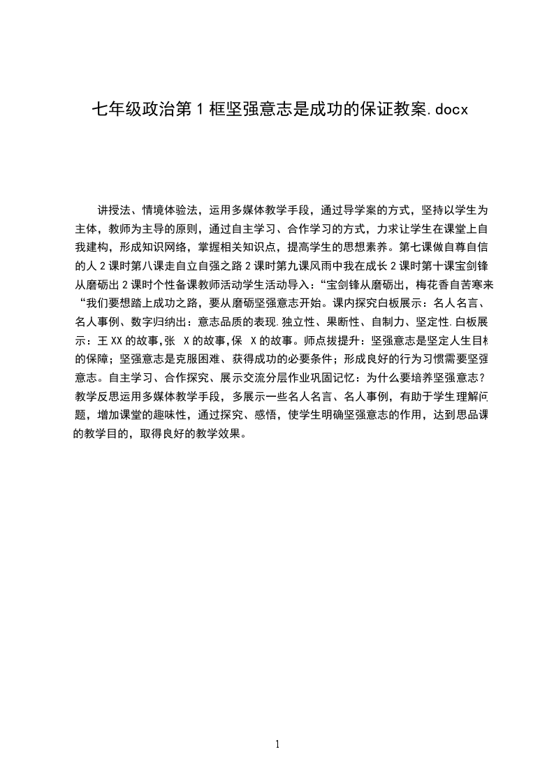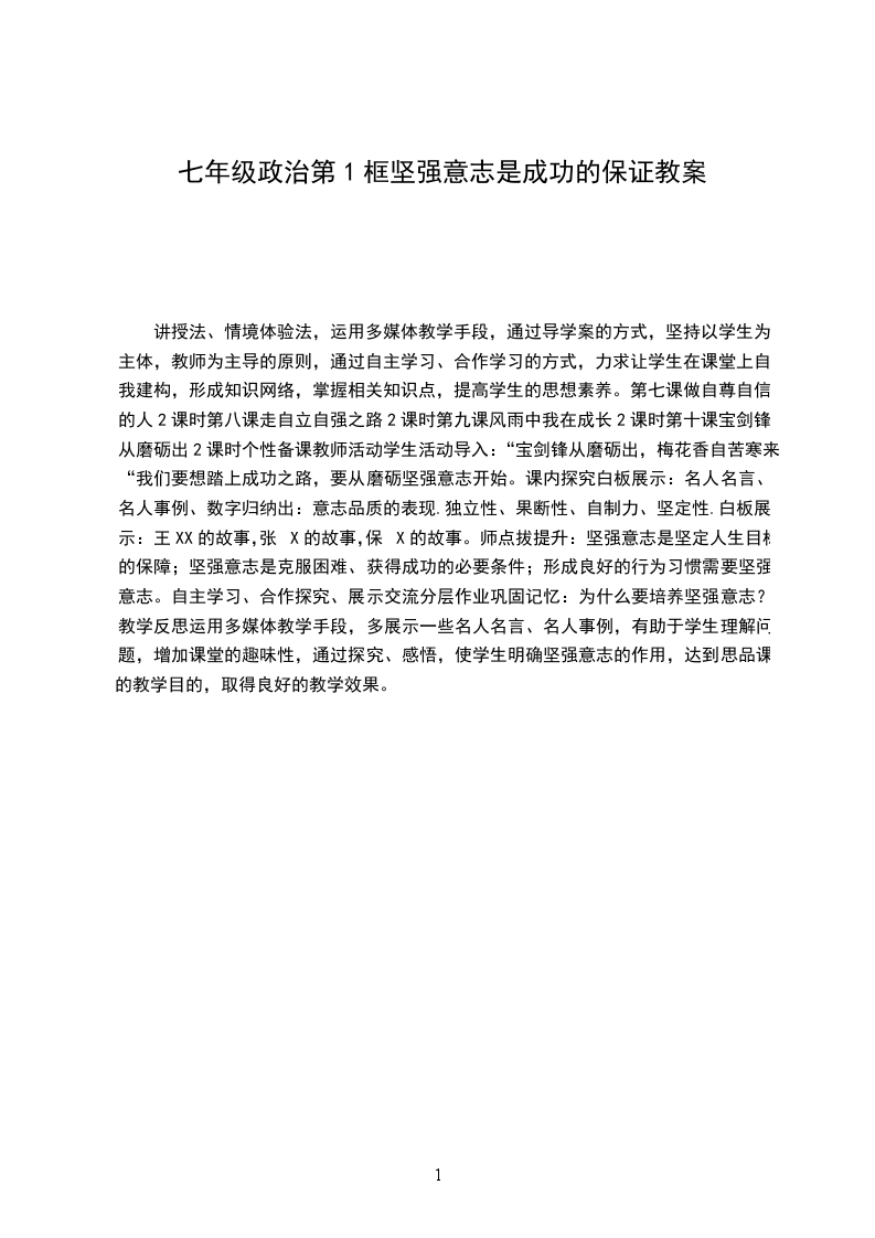 讲授法、情境体验法,运用多媒体教学手段,通过导学案的方式,坚持以学生为主体,教师为主导的原则,通过自主学习、合作学习的方式,力求让学生在课堂上自我建构,形成知识网络,掌握相关知识点,提高学生的思想素养。第七课做自尊自信的人2课时第八课走自立自强之路2课时第九课风雨中我在成长2课时第十课宝剑锋从磨砺出2课时个性备课教师活动学生活动导入:“宝剑锋从磨砺出,梅花香自苦寒来“我们要想踏上成功之路,要从磨砺坚强意志开始。课内探究白板展示:名人名言、名人事例、数字归纳出:意志品质的表现.独立性、果断性、自制力、坚定性.白板展示:王XX的故事,张X的故事,保X的故事。师点拔提升:坚强意志是坚定人生目标的保障;坚强意志是克服困难、获得成功的必要条件;形成良好的行为习惯需要坚强意志。自主学习、合作探究、展示交流分层作业巩固记忆:为什么要培养坚强意志?教学反思运用多媒体教学手段,多展示一些名人名言、名人事例,有助于学生理解问题,增加课堂的趣味性,通过探究、感悟,使学生明确坚强意志的作用,达到思品课的教学目的,取得良好的教学效果。