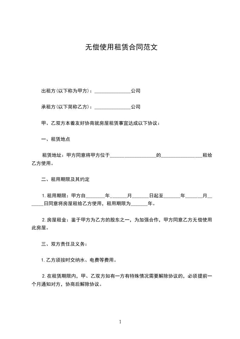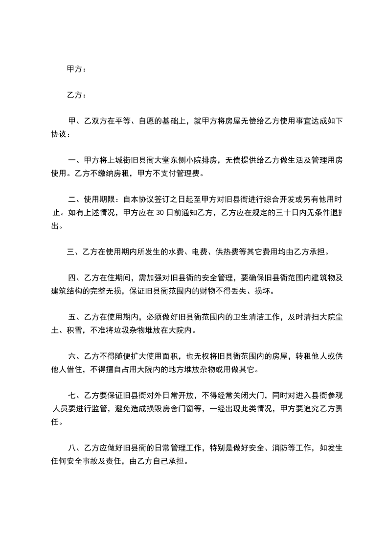 甲乙双方通过友好协商,就店铺无偿使用事宜达成如下协议: